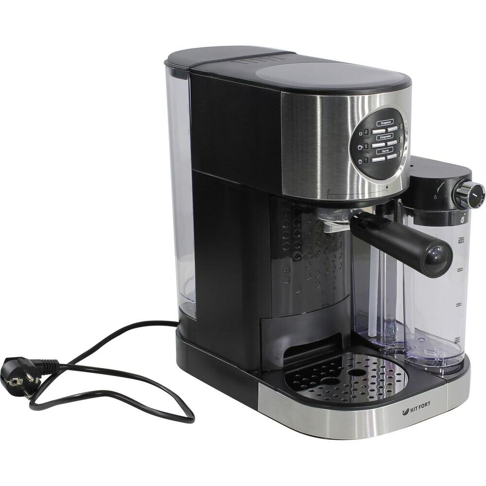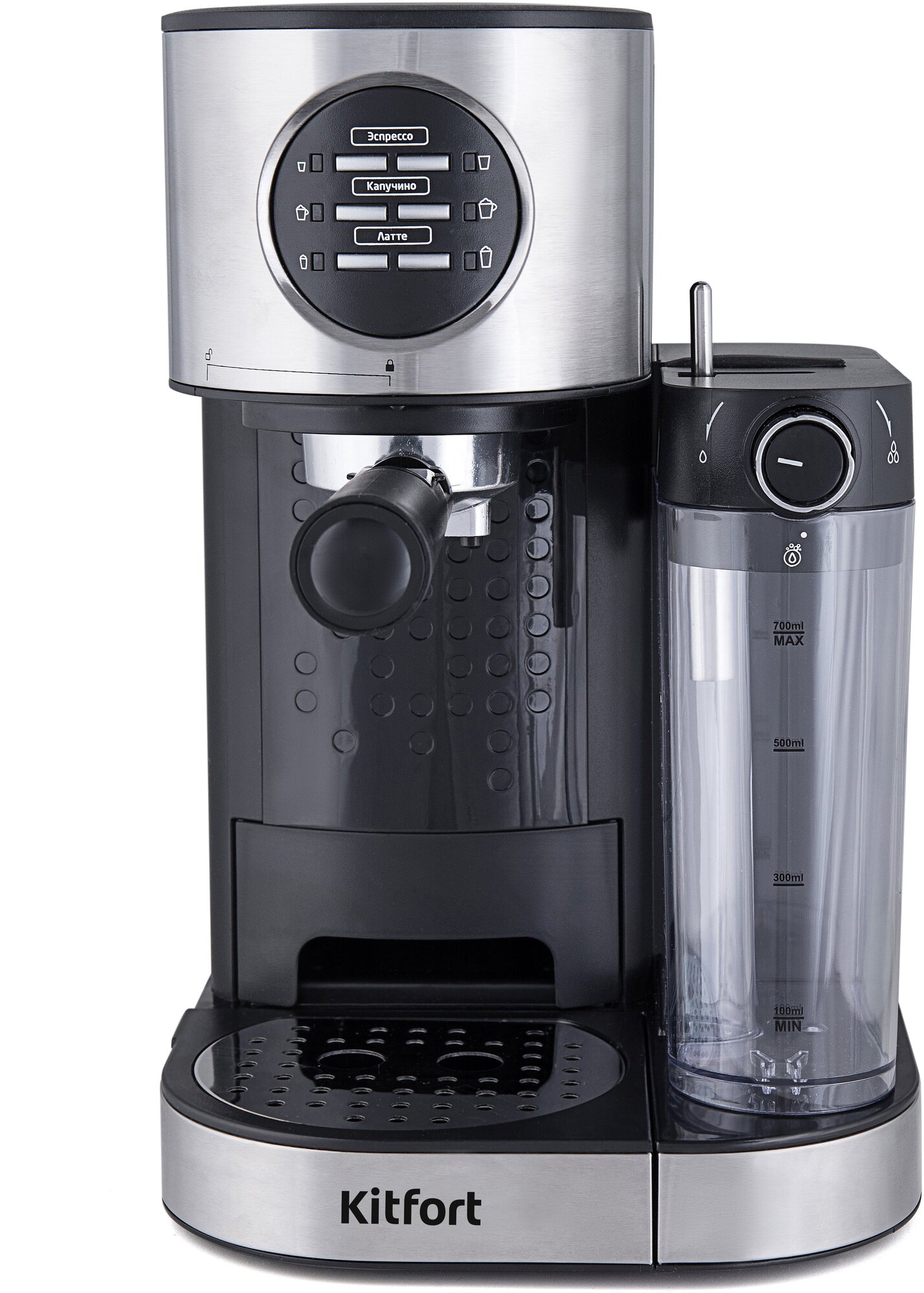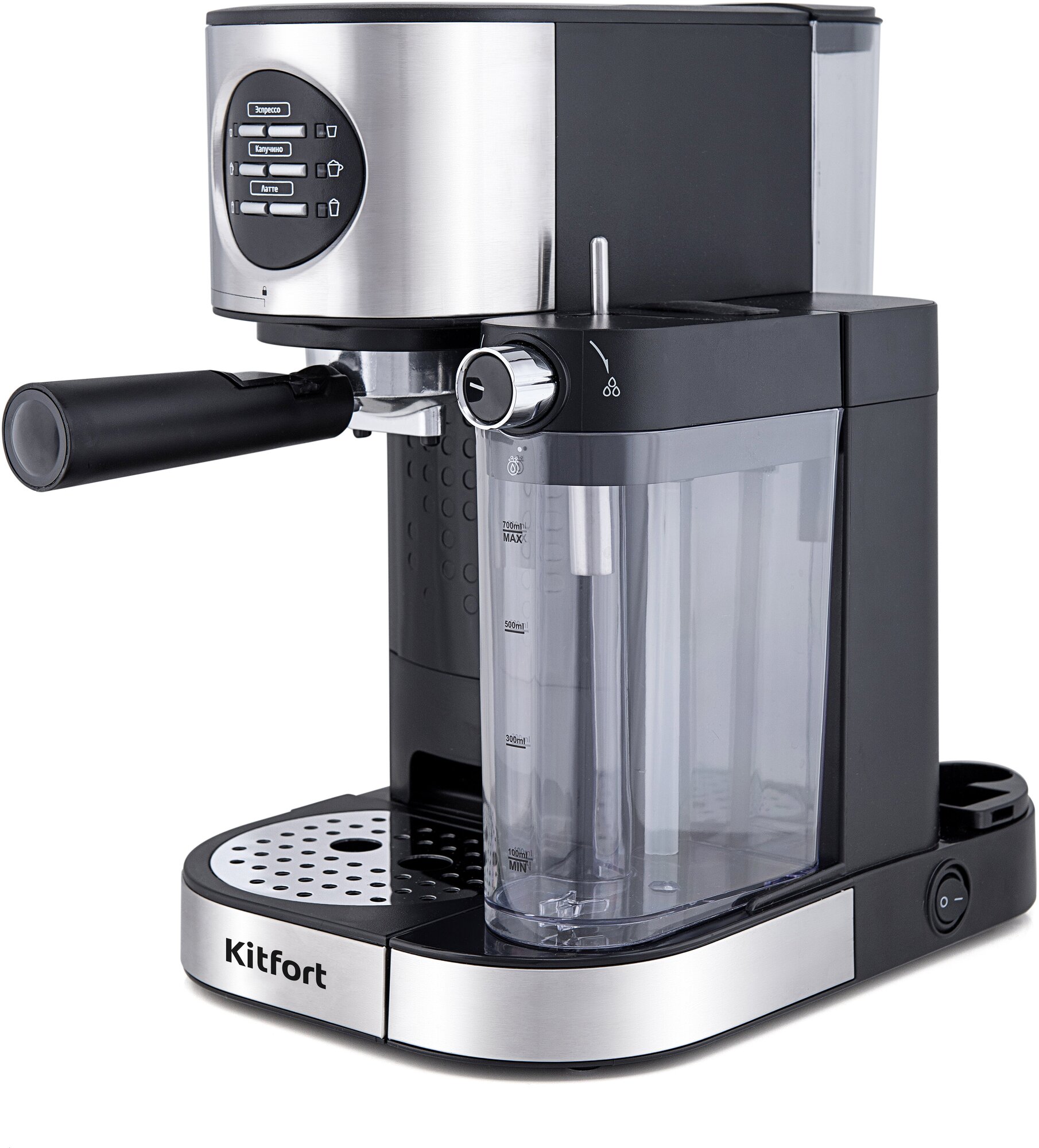 Помповая рожковая автоматическая эспрессо-кофеварка Kitfort поможет приготовить кофе эспрессо, капучино или латте. Тип и объем напитка выбирается нажатием кнопки, а молочная пенка приготовляется во встроенном автоматическом капучинаторе.