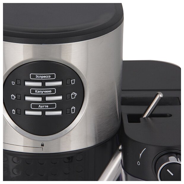Принцип действия кофеварки основан на пропускании горячей воды под давлением в несколько атмосфер через слой молотого кофе. Температура воды контролируется встроенным термостатом. Это позволяет быстро и полно экстрагировать из заварки все полезные вещества и получить отличный кофе. А благодаря функции взбивания молочной пены вы сможете приготовить настоящий капучино или латте. Функция программирования позволяет подстроить количество напитка под объем чашки.