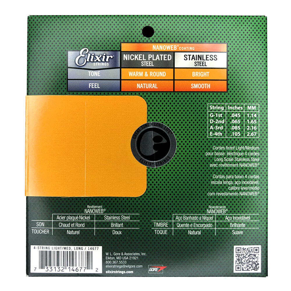 Elixir 14677 Nanoweb Medium – это набор струн со средним натяжением, предназначенный для игры на бас-гитаре. Все 4 струны комплекта изготовлены из нержавеющей стали.