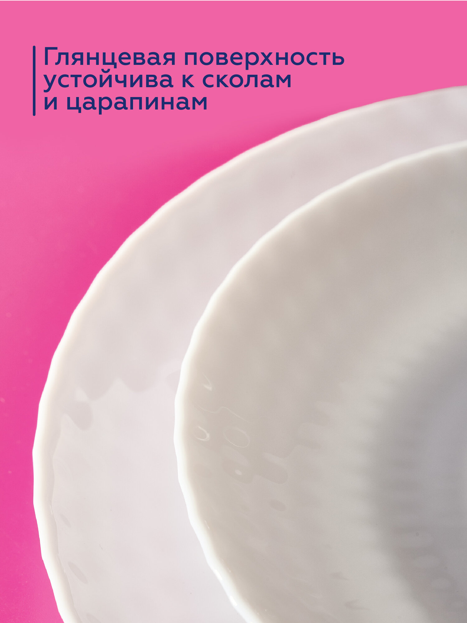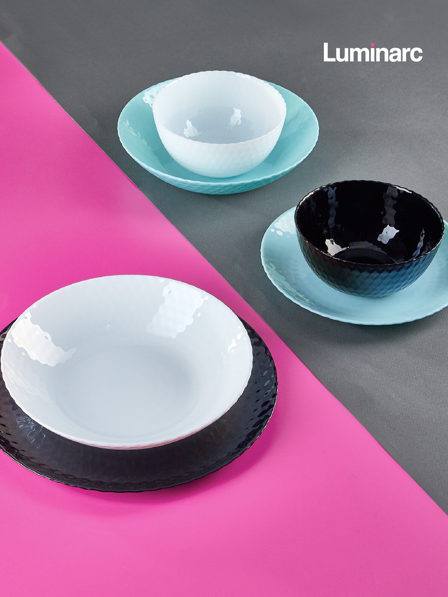 Посуда Luminarc отличается удобством, практичностью и многообразием форм. Вследствие своих технических характеристик и способности удерживать тепло, при сервировке стола сохраняет пищу теплой продолжительное время. Можно мыть в посудомоечной машине и использовать в СВЧ.