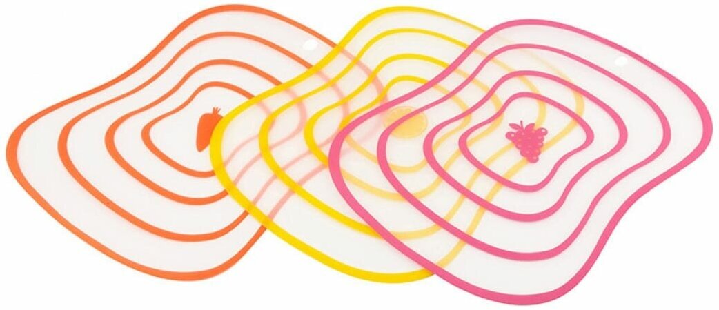 **Набор досок** Mallony Divo размером 30x40 см сделаны из разноцветного пластика. Доски промаркированы изображениями продуктов, что помогает не путаться при готовке.