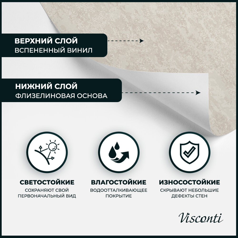 **Обои флизелиновые New Age Visconti** подходят для оклейки стен в сухих и помещениях с умеренным уровнем влажности: в залах, гостиных, столовых, детских комнатах и спальнях. Этот материал отличается легкостью монтажа, потому что для его фиксации достаточно смазывать клеем только поверхность стены. Благодаря высокой плотности и прочности флизелина обои не рвутся даже при усадке стен. Материал обладает устойчивостью к истиранию, при необходимости его можно окрашивать акриловыми или водно-дисперсионными красками.