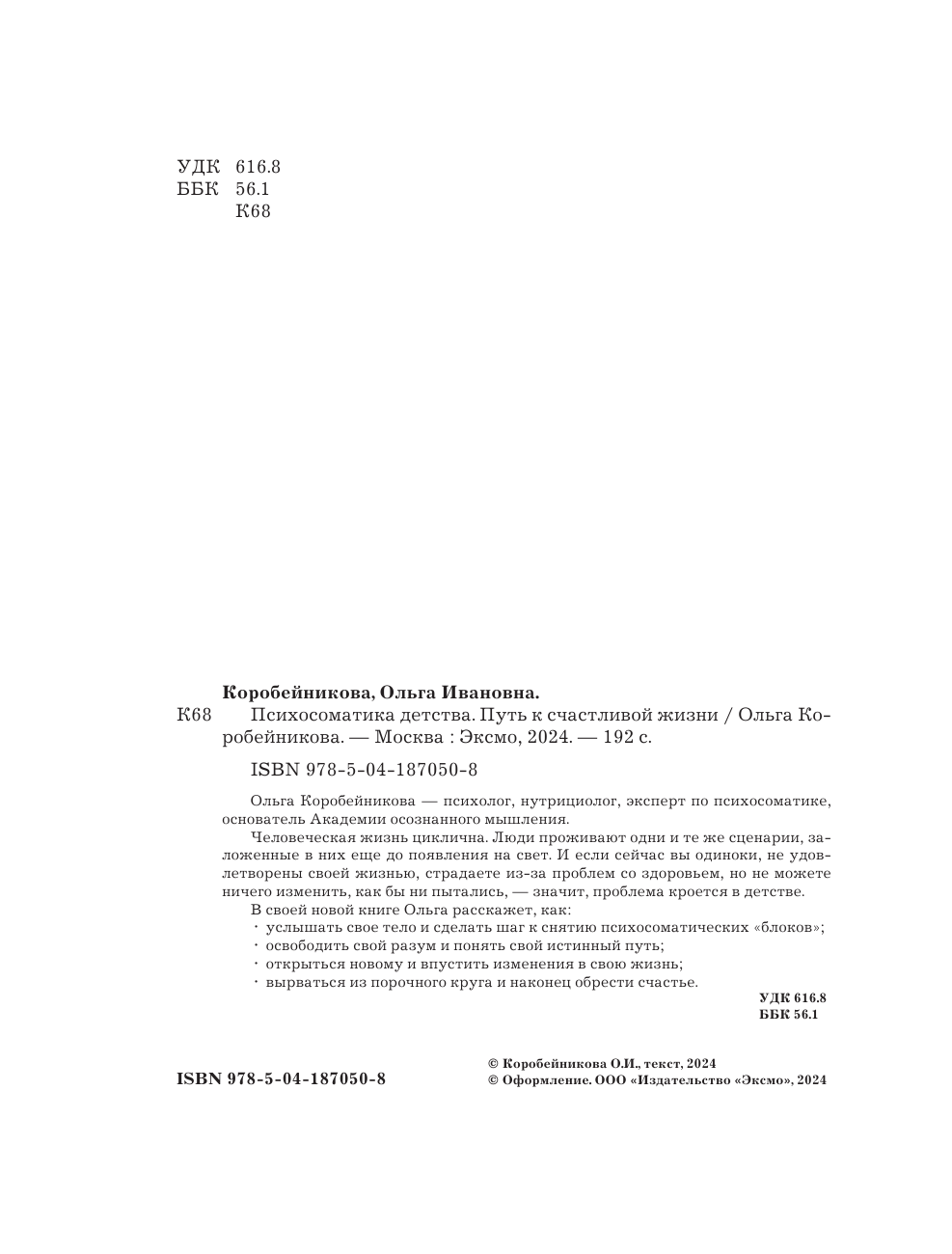 Психосоматика детства. Путь к счастливой жизни (Коробейникова Ольга Ивановна); ООО "Издательство "Эксмо", 2024