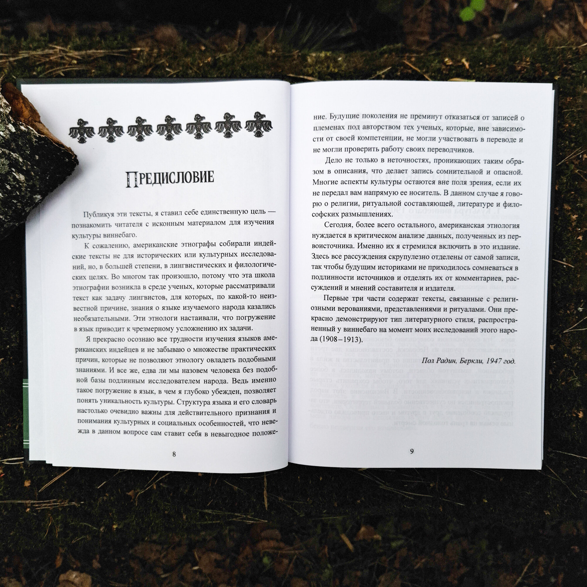 Если вы хотите ощутить настоящий индейский дух, то эта книга для вас. Пол Радин, легендарный этнолог, провел несколько лет в резервациях индейцев виннебаго в начале 20 века и собрал уникальный материал о культуре и мировоззрении этого загадочного народа. Он скомпоновал книгу так, чтобы научный анализ не затенял аутентичное впечатление от материала. Настоящая речь индейцев, дополненная точным дословным переводом и подробными комментариями, позволяет окунуться в мир, люди которого привычны к путешествиям в страну духов.