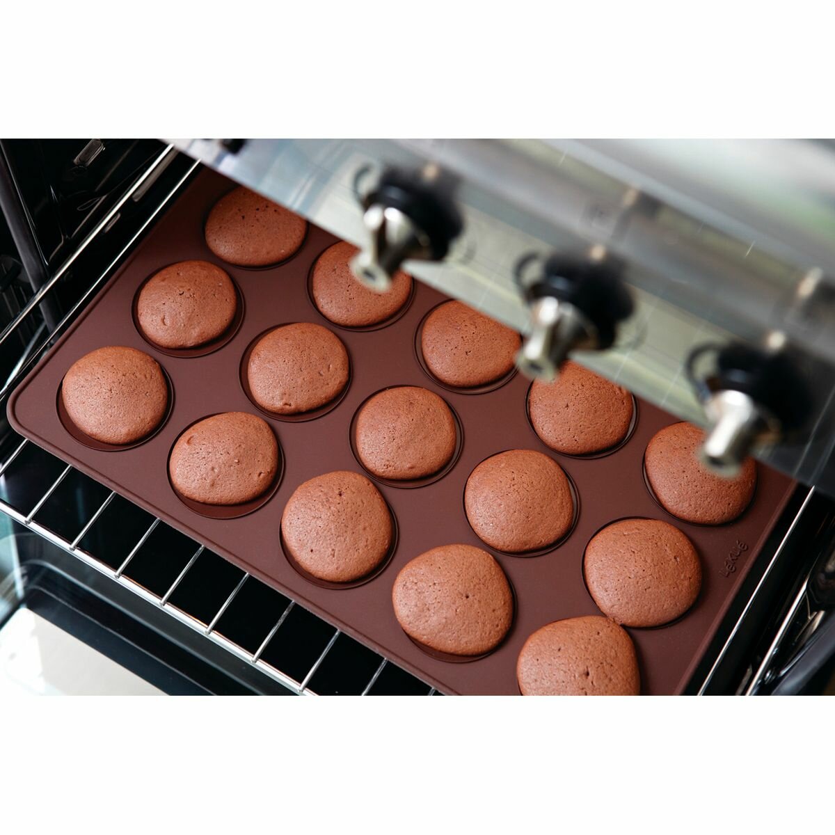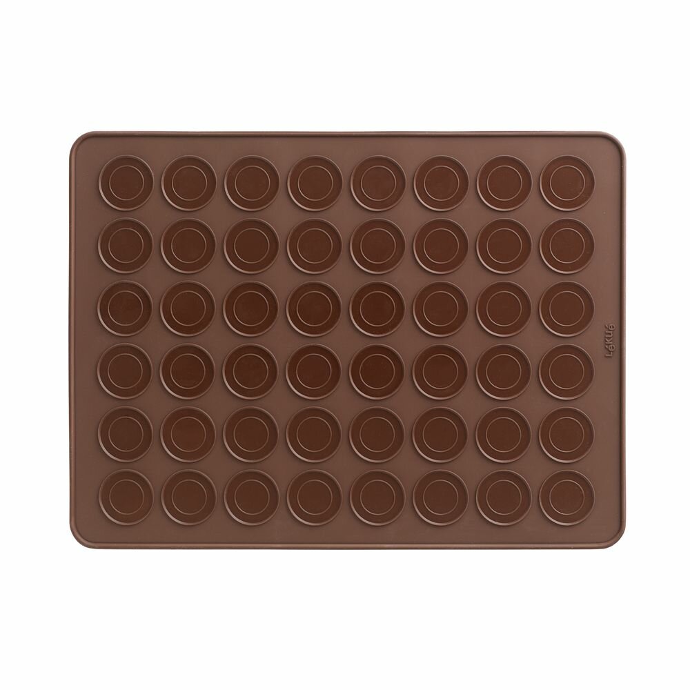 На коврике предусмотрены рельефные ячейки с бортиками (48 шт.). Вы сможете приготовить за 1 раз 24 изделия (48 половинок). Изделия получаются идеальной формы и одного размера. Благодаря эластичному силикону изделия не прилипают и легко снимаются. Одного объема Decomax достаточно для приготовления 2 партий макарон. Универсальные насадки могут использоваться для любых вариантов декорирования готовых изделий: макарон, профитролей, печенья или кексов, а также для выкладывания массы в формы.