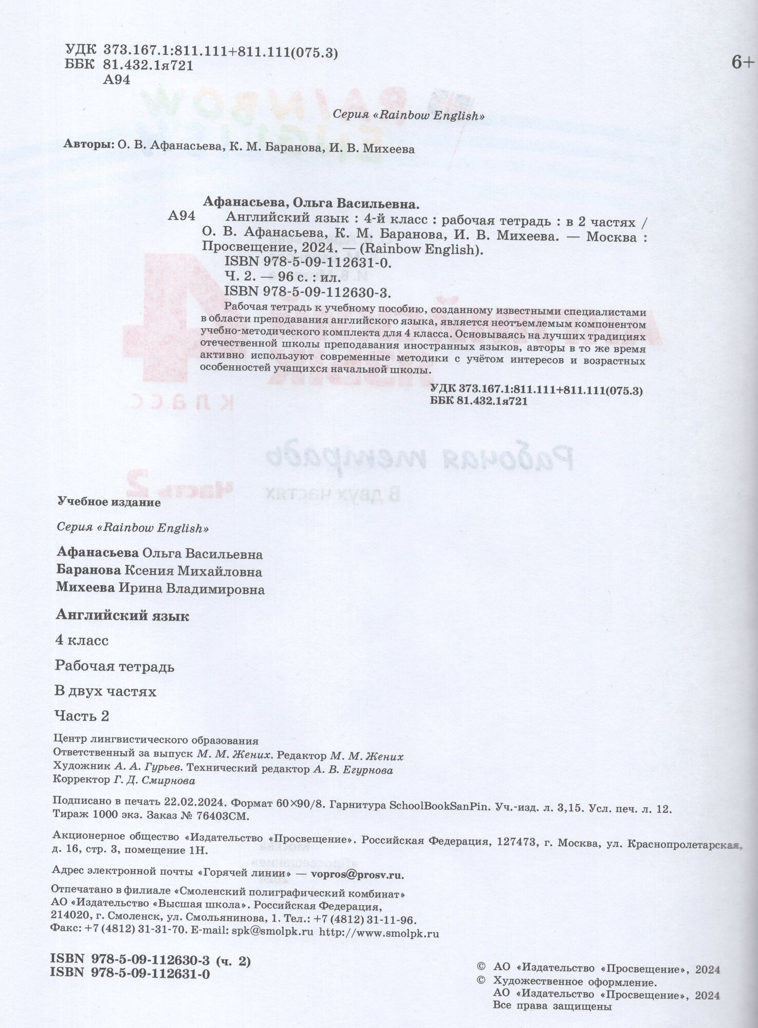 Английский язык. 4 класс. Рабочая тетрадь. В 2-х частях (Ксения Михайловна Баранова, Ирина Владимировна Михеева, Ольга Васильевна Афанасьева); Просвещение, 2024