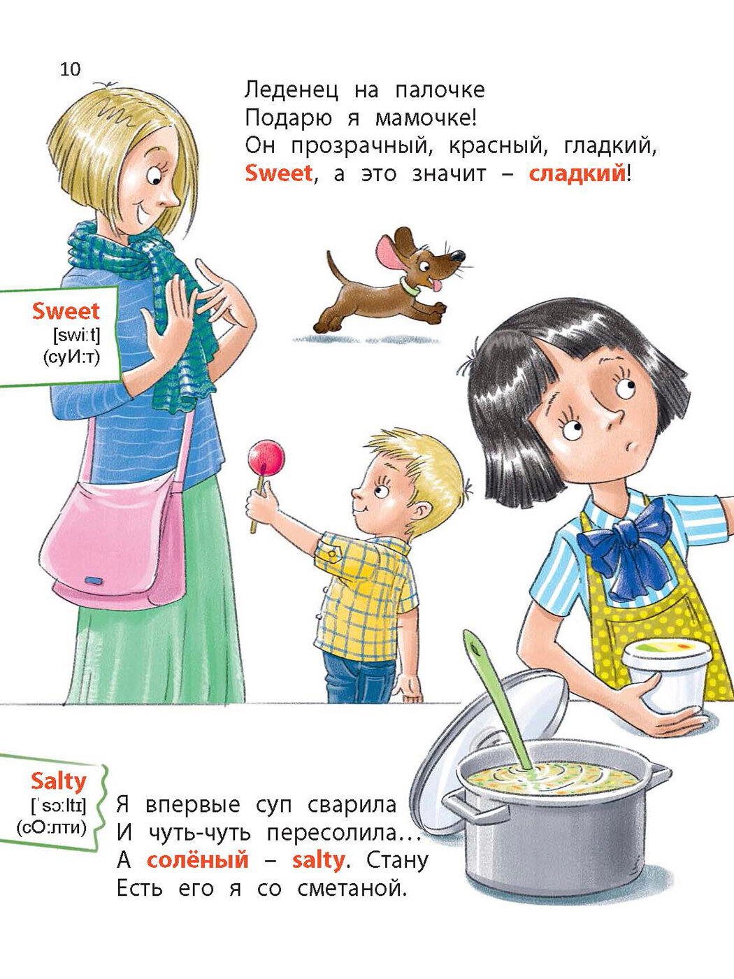 Эта книга не учебник или методическое пособие по изучению иностранного языка. Она поможет вам легко и в игровой форме познакомить малыша с английскими прилагательными. Под её обложкой всё, что так любят дети: весёлые стихи и яркие картинки. В помощь родителям для каждого английского слова даны две транскрипции классическая (написана с помощью международных знаков) и практическая (написана с помощью русских букв, как это принято в разговорниках).Книга является продолжением аналогичных весёлых пособий «Как сосиски по-английски?», «Как ириски по-английски?», «Путешествовать хочу и английский я учу!» и «А я учу до школы английские глаголы!». Все эти книги созданы на основе рабочих материалов, которые автор много лет успешно использовала на занятиях английским языком с дошкольниками.