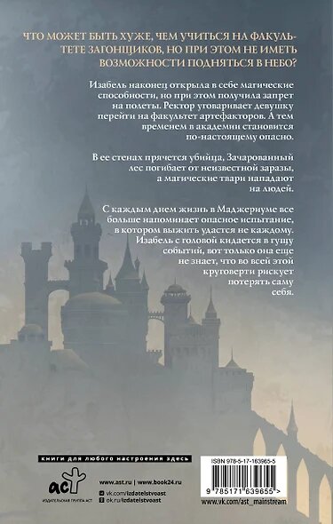 Изабель наконец открыла в себе магические способности, но при этом получила запрет на полеты. Ректор уговаривает девушку перейти на факультет артефакторов. А тем временем в академии становится по-настоящему опасно. В ее стенах прячется убийца, Зачарованный лес погибает от неизвестной заразы, а магические твари нападают на людей. С каждым днем жизнь в Маджериуме все больше напоминает опасное испытание, в котором выжить удастся не каждому. Изабель с головой кидается в гущу событий, вот только она еще не знает, что во всей этой круговерти рискует потерять саму себя.