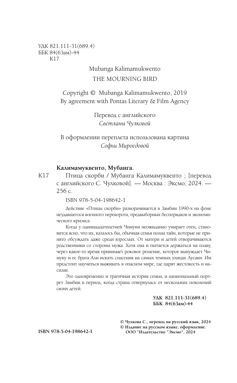 Книга: Птица скорби (Мубанга Калимамуквенто); Эксмо, Inspiria, Редакция 1, 2024