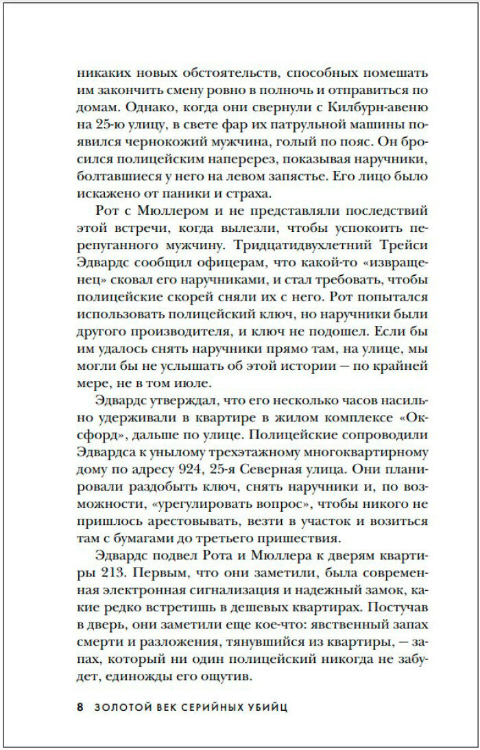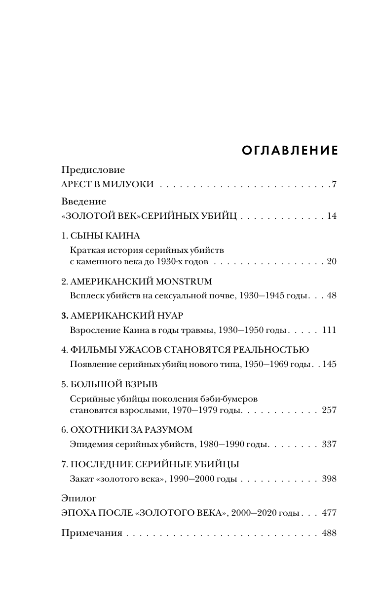 Эд Кемпер, Тед Банди, Харви Глатмен, Джон Уэйн Гейси, Джеффри Дамер… Эти и многие другие маньяки, прославившиеся на весь мир, терроризировали Америку в период с 1950-е по 1990-е годы. Почему именно этот период стал эпохой расцвета серийных убийц? Как Вторая мировая война повлияла на всплеск серийных убийств и почему многие маньяки — дети ветеранов войны? Чем маньяки "золотого века" отличаются от убийц предыдущих и последующих эпох, и чьи преступления — самые ужасные? Как "золотой век" серийных убийств положил начало профайлингу и почему остался в прошлом? Криминальный историк, доктор наук Питер Вронски, всесторонне исследуя феномен "звездных" маньяков, отвечает на все эти вопросы. Объемная и увлекательная, его книга показывает, почему жуткие преступления знаменитых серийных убийц стали попкультурным феноменом и до сих пор будоражат наше сознание.