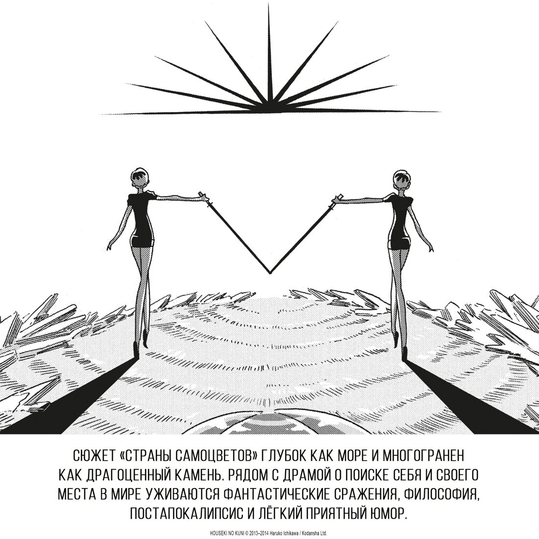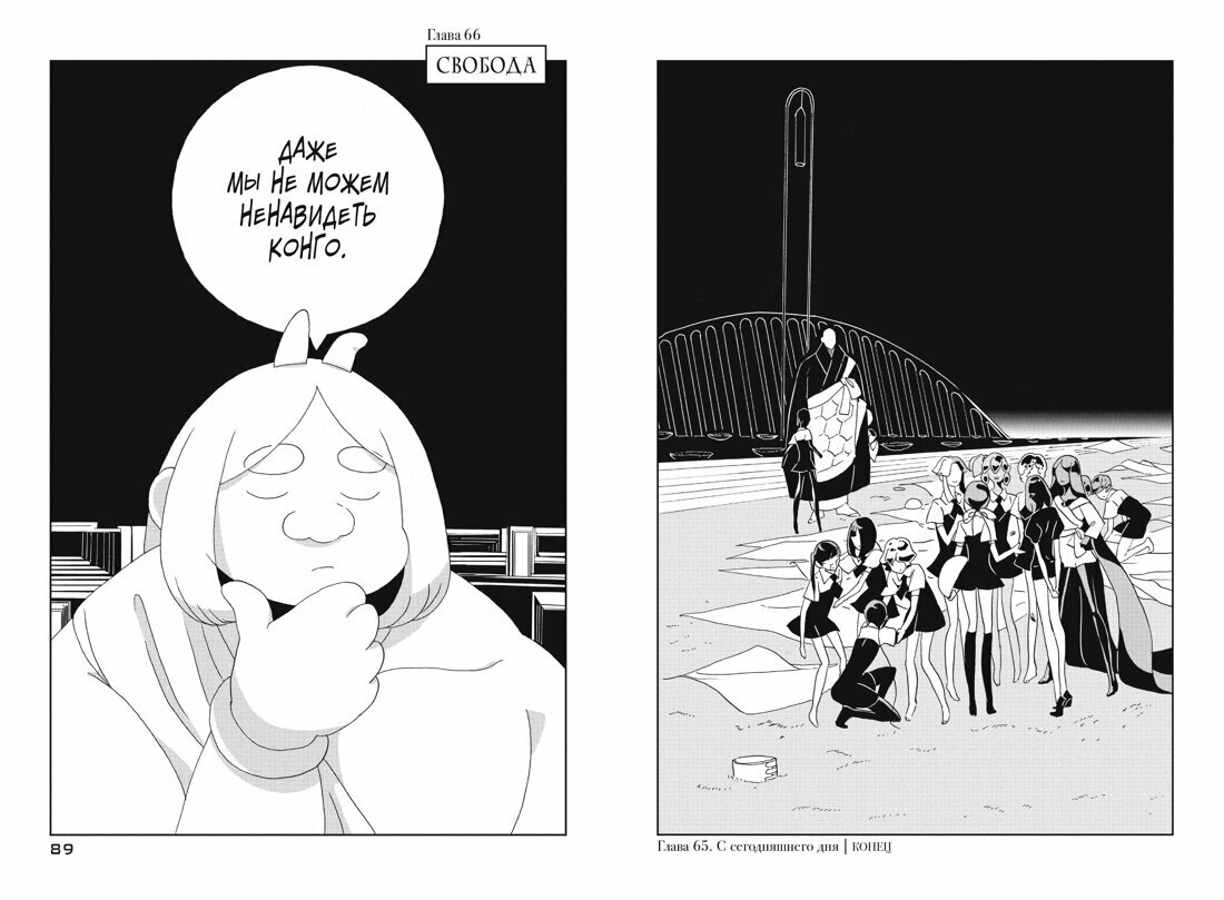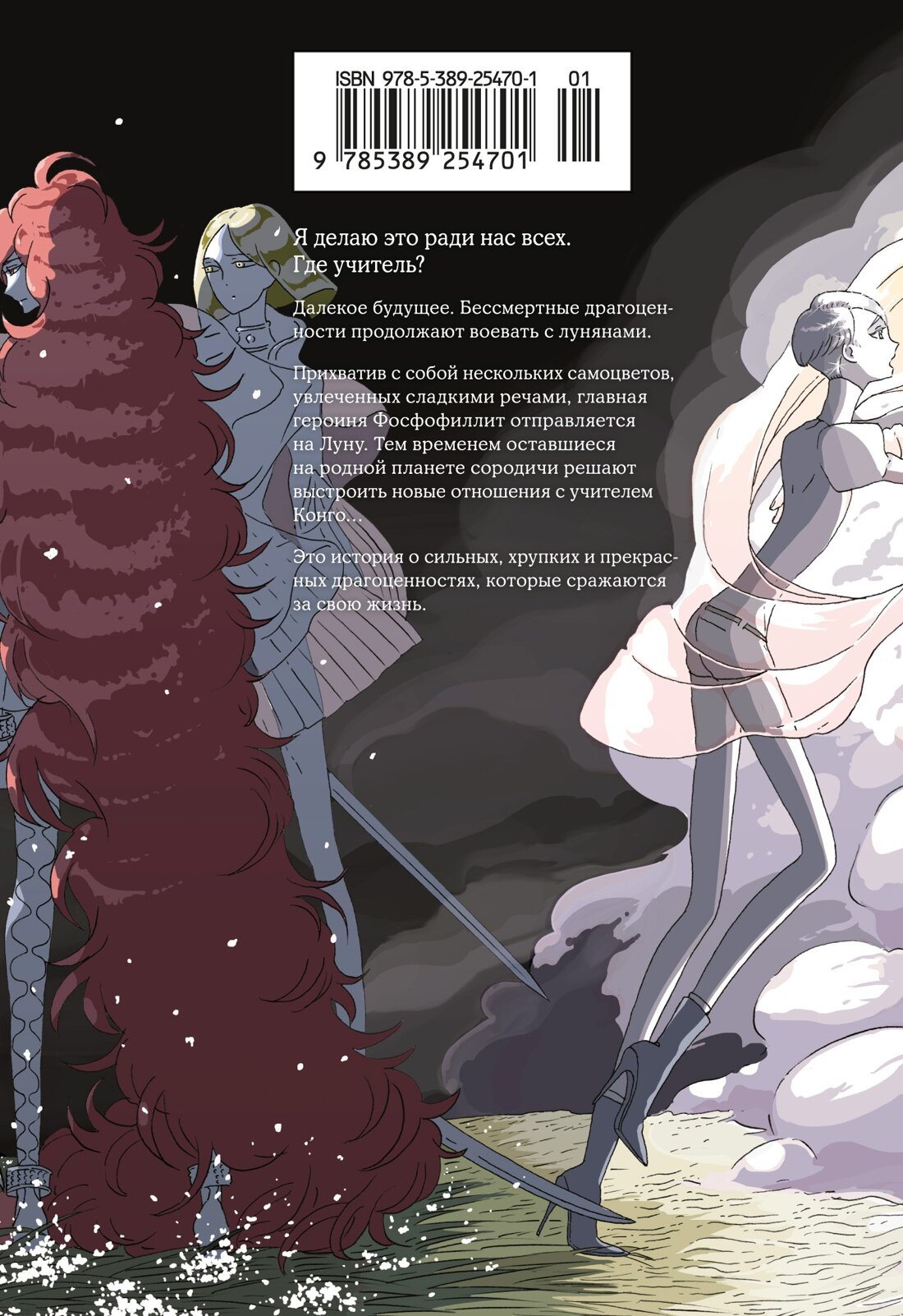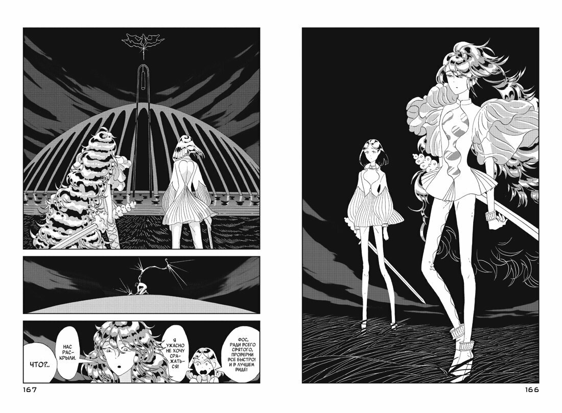 Я делаю это ради нас всех. Где учитель? Далекое будущее. Бессмертные драгоценности продолжают воевать с лунянами. Прихватив с собой с нескольких самоцветов, увлеченных сладкими речами, главная героиня Фосфофиллит отправляется на Луну. Тем временем оставшиеся на родной планете сородичи решают выстроить новые отношения с учителем Конго… Это история о сильных, хрупких и прекрасных драгоценностях, которые сражаются за свою жизнь.