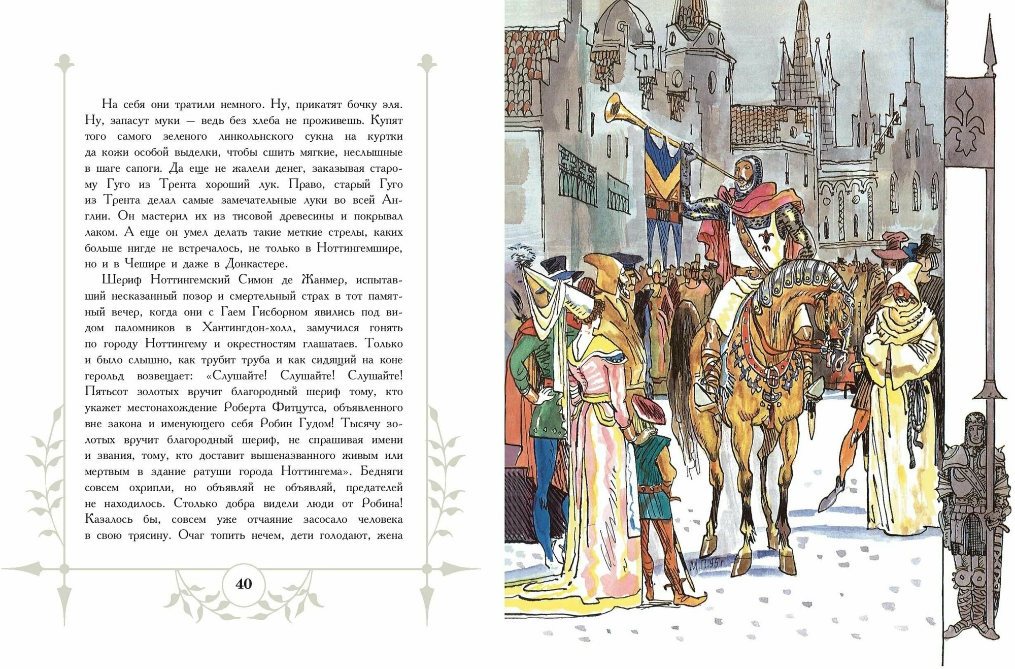 В густом и таинственном Шервудском лесу дубы стоят стеной, а тисы достают верхушками до небес. И хозяин этого леса - непревзойденный стрелок, покровитель всех униженных и оскорбленных, благородный разбойник Робин Гуд. Во всем помогают ему верные друзья - Маленький Джон и отец Тук, а также возлюбленная - прекрасная Мэриен. Вместе они объявили войну всем ворам и предателям, всем творящим зло на их родной земле. Романтическая повесть о доблестном герое написана Ириной Токмаковой по мотивам английских легенд и баллад. Книгу украшают знаменитые иллюстрации Михаила Петрова.