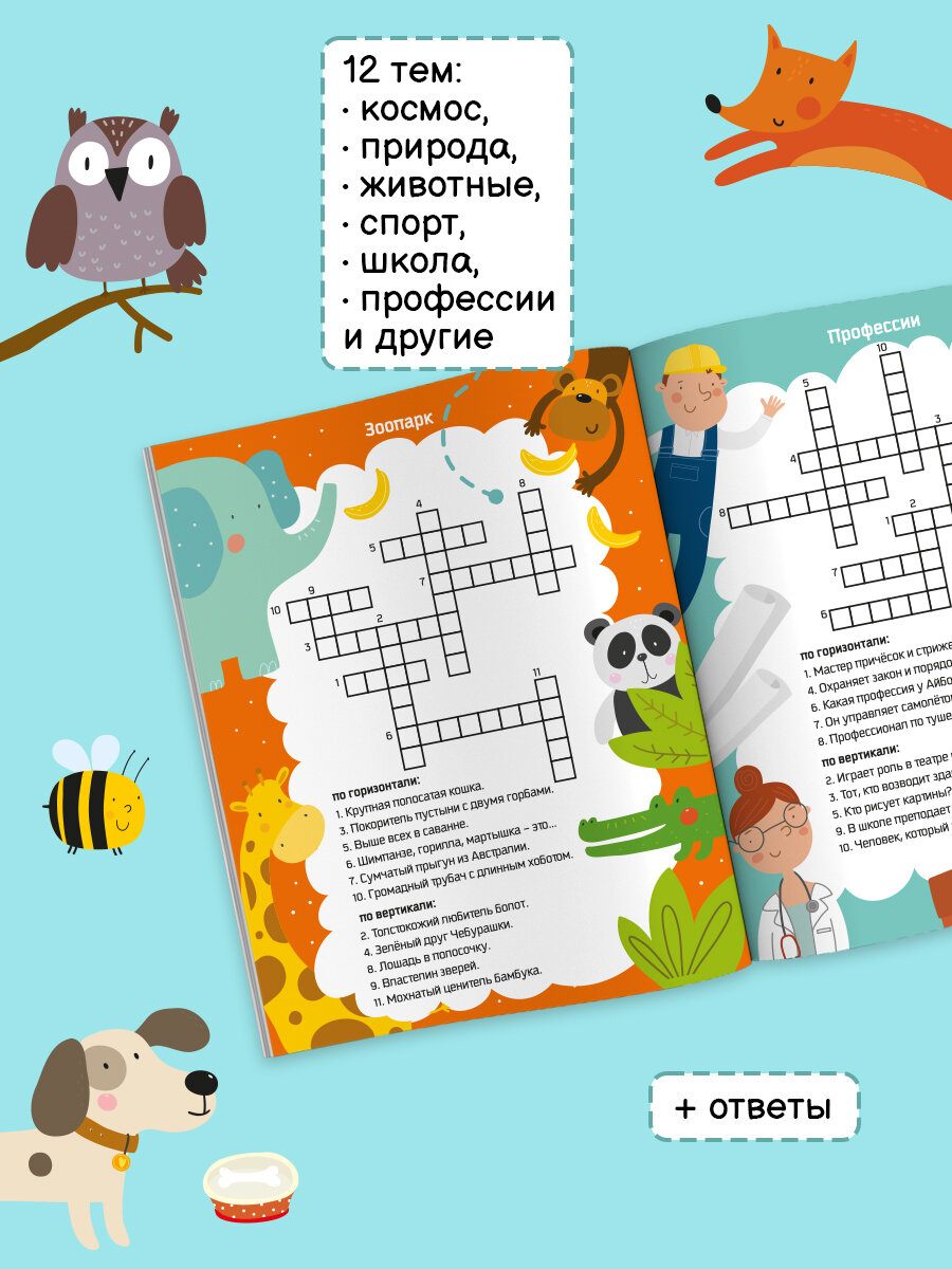 Увлекательные книжки с кроссвордами и филвордами сделают полезным досуг дошкольников и школьников начальных классов. Ребёнок отгадывает слова и вписывает их в клеточки, а также ищет разные слова в квадратах, заполненных буквами.