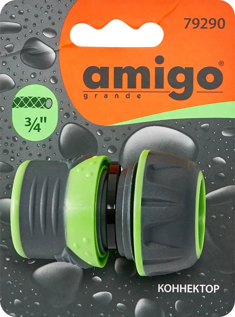 **Коннектор Amigo 79290** представляет собой стандартную модель и используется при обустройстве оросительной системы дачного, загородного участка. Предназначен для подсоединения шланга. Отличается простотой установки и демонтажа.
