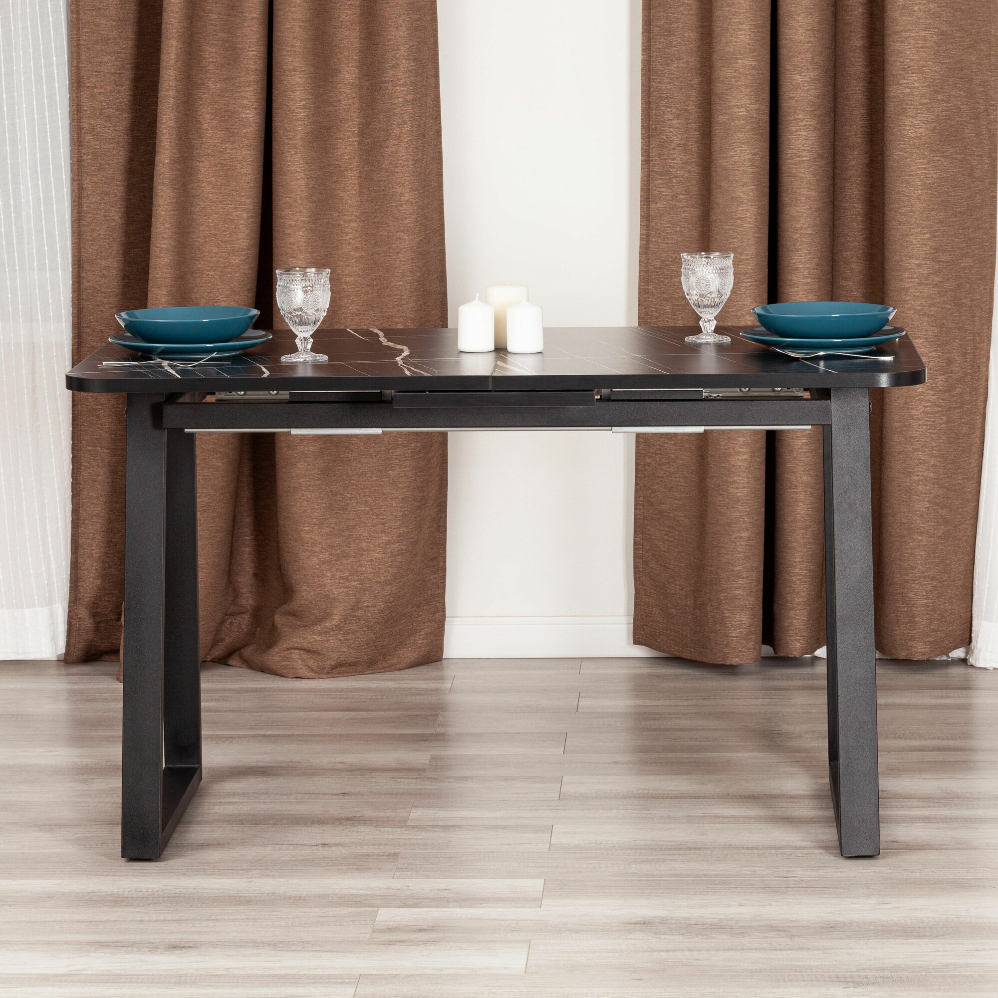Современный раскладной стол от ТС станет ярким и запоминающимся элементом интерьера вашего загородного дома или городской квартиры. Он прекрасно впишется в гостиную, кухню или столовую. Столешница и вставка изготовлены из ЛДСП толщиной 22 мм, покрытой защитным слоем HPL толщиной 1 мм. Благодаря оверлею с высокой степенью истираемости HPL поверхности устойчивы к повреждениям. Используется кромка ПВХ 2 мм. Для увеличения размера стола предусмотрен автоматический механизм подъёма вставки. Прочные чёрные ножки из массива берёзы окрашены и регулируются по высоте для компенсации неровностей пола с помощью регулировочных винтов. Чтобы половинки столешницы не раздвигались самопроизвольно, необходимо переключать фиксаторы в положение «закрыто». Эта уникальная модель впечатляет своей прочностью, простотой в уходе и долговечностью. Она придаёт помещению элегантность, изысканность и привлекает внимание гостей к обеденной зоне.
