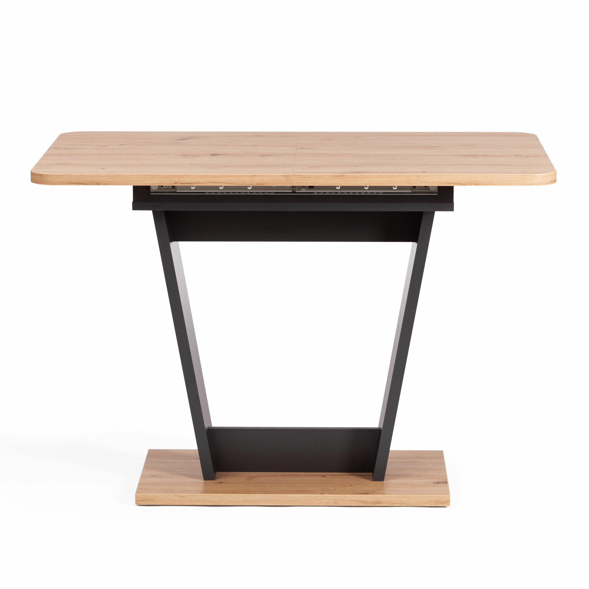 Лёгкий и визуально привлекательный стол-трансформер от ТС станет прекрасным дополнением любого интерьера. Большая столешница, оригинальная опорная ножка и гармоничное сочетание оттенков создают стильный образ. Благодаря своим размерам стол вмещает от четырёх до шести человек. Вкладываемая часть стола легко убирается в горизонтальное положение подстолья. Края столешницы обработаны прочной пластиковой кромкой толщиной 2 миллиметра. ЛДСП толщиной 25 миллиметров. Система раздвижения стола — синхронная со стопором. Стол отлично впишется в гостиную, кухню или загородный дом.