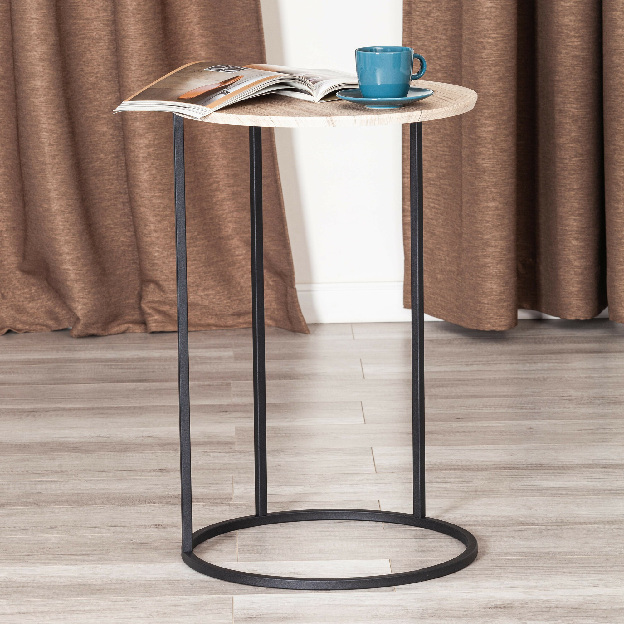 Журнальный стол MONE в стиле лофт от ТС — отличный способ создать уютную и стильную атмосферу в вашем доме. Благодаря простому и функциональному дизайну, этот предмет мебели станет неотъемлемой частью современного интерьера. Каркас стола выполнен из прочного металла, что обеспечивает ему устойчивость и долговечность. Круглая столешница сделана из МДФ толщиной 16 мм, покрытого плёнкой, что защищает её от повреждений и сохраняет первоначальный вид надолго. Этот стол станет отличным помощником при приёме гостей и подойдёт для хранения книг, ноутбука, журналов и других предметов. Оригинальное сочетание чёрного цвета и оттенка «акация» придаёт изделию особую привлекательность и уникальность. Элегантный журнальный стол MONE дополнит ваш дом и будет радовать вас своим видом долгое время. Максимальная нагрузка составляет 5 кг.