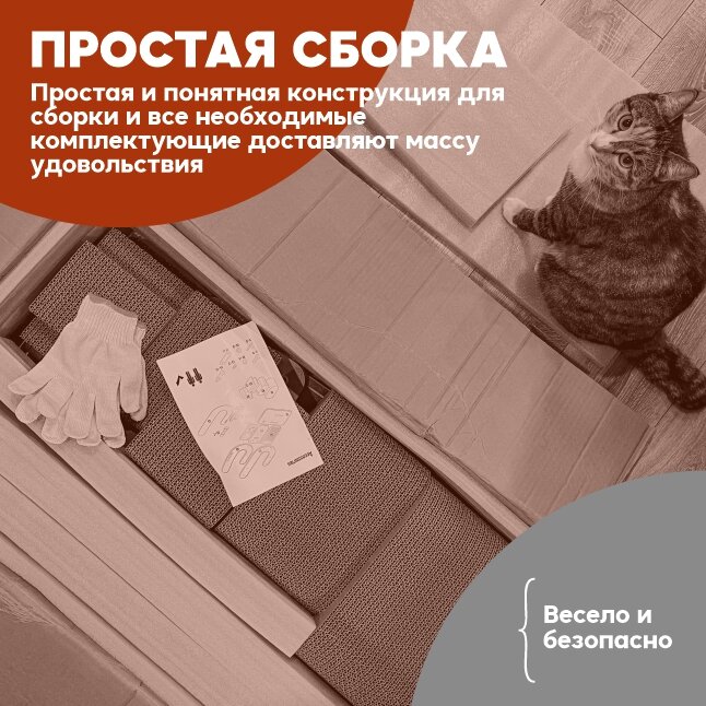 Серия уникальных когтеточек «Shake House» создана известным дизайнером-проектировщиком Дингом Тианчи специально для Petree!Дизайнер Динг Тианчи когда-то работал в международных топовых фирмах в Майами, Шанхае и Лос-Анжелесе. По возвращению в Китай, Динг за три года построил собственную фабрику по производству когтеточек, сочетая современную среду обитания кошек, классический язык дизайна и философию прагматичной функциональности.Когтеточка Petree подходит для питомцев разного размера, возраста и роста. Подойдёт для питомцев с короткими лапами. Кот, кошка или котёнок могут играть с шариками и точить когти! Подходит для котят и пожилых котов, чтобы обеспечить безопасный и простой вход в автоматический лоток Petree 2!Округлые безопасные элементы с просчитанным утяжелением конструкции делают когтеточку надёжной даже для самых больших котов и кошек! Очень солидно смотрится в интерьере вашего дома благодаря использованию качественных и премиальных материалов: высококачественный гофрированный картон, безопасный и прочный фасад МДФ класс Е1. Не содержит в составе кошачью мяту!Простая и понятная конструкция для сборки и все необходимые комплектующие доставляют массу удовольствия. Детали из гофрированного картона можно заменить на новые, как только они сточатся, поэтому когтеточка Petree прослужит вам долгие годы!Попробуйте потрясающее качество Petree!