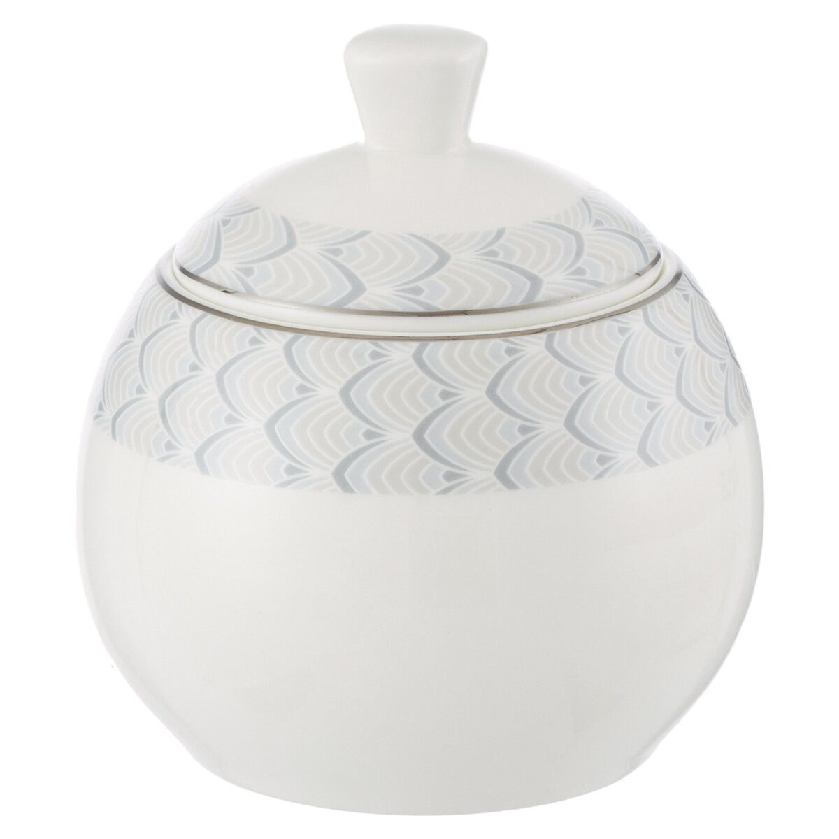 Сахарница Gipfel Caroline выполнена в классическом стиле: белоснежную поверхность украшает по бортику изящный рельефный геометрический орнамент в молочно-серых тонах. Серебристый кант по краю дополняет композицию. Утонченные формы, элегантный декор и глянцевая поверхность делают посуду коллекции Caroline великолепным украшением стола.