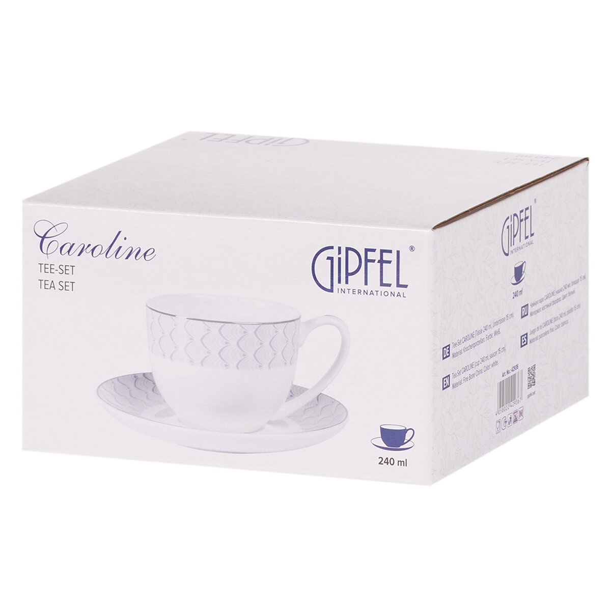 Чайная пара Gipfel Caroline 42936 упакована в фирменную коробку. Соберите свой сервиз из посуды коллекции Caroline.