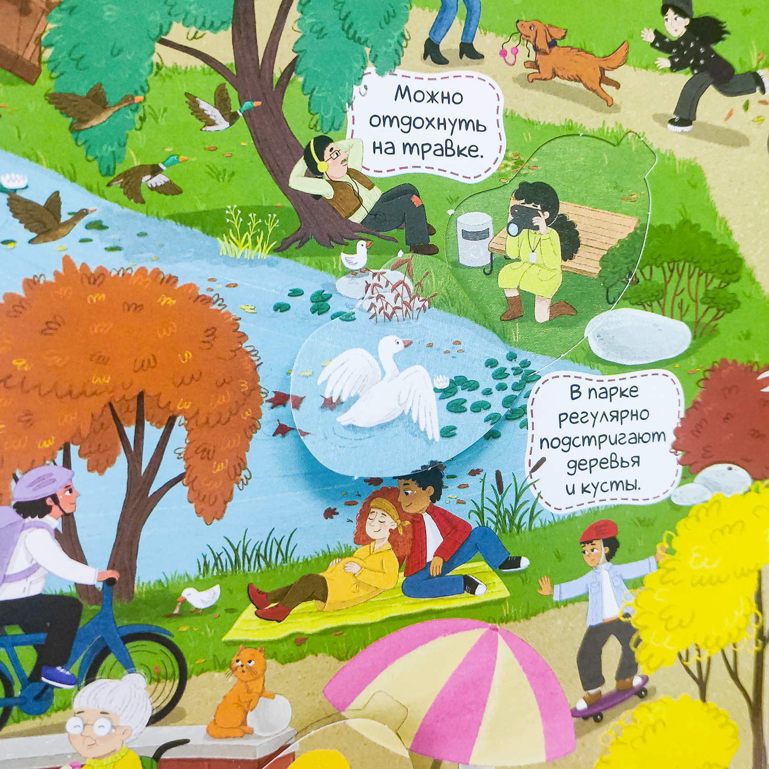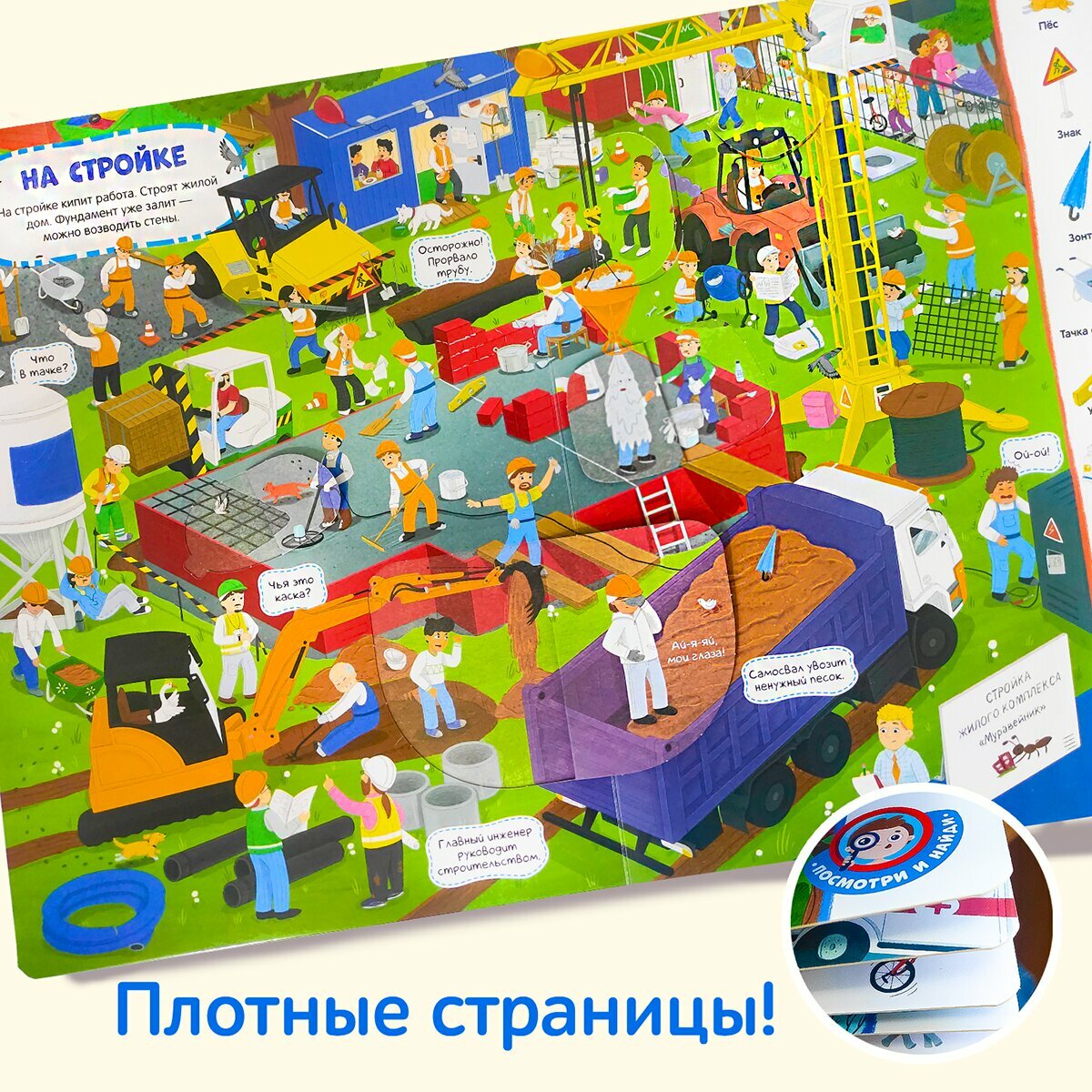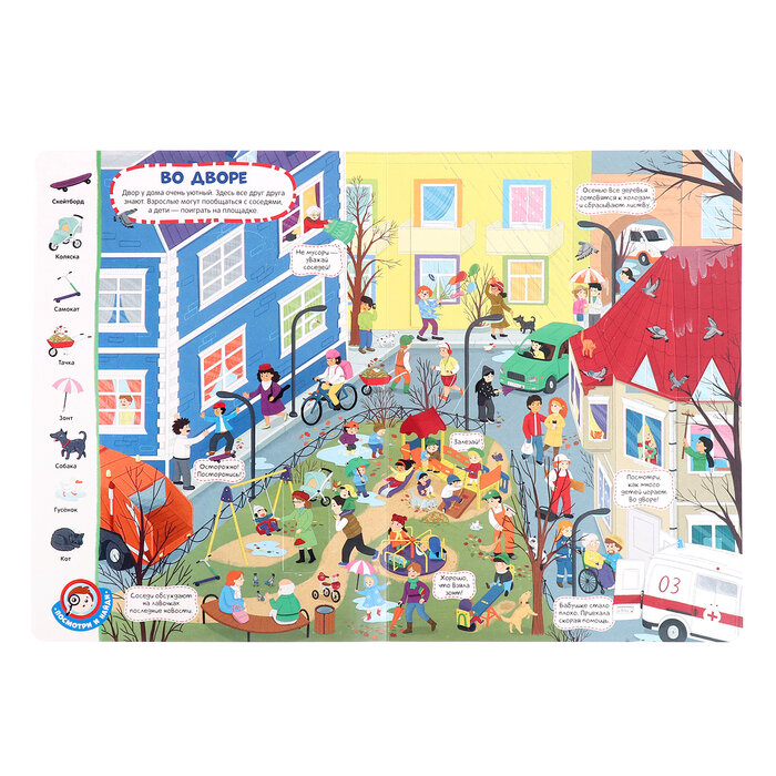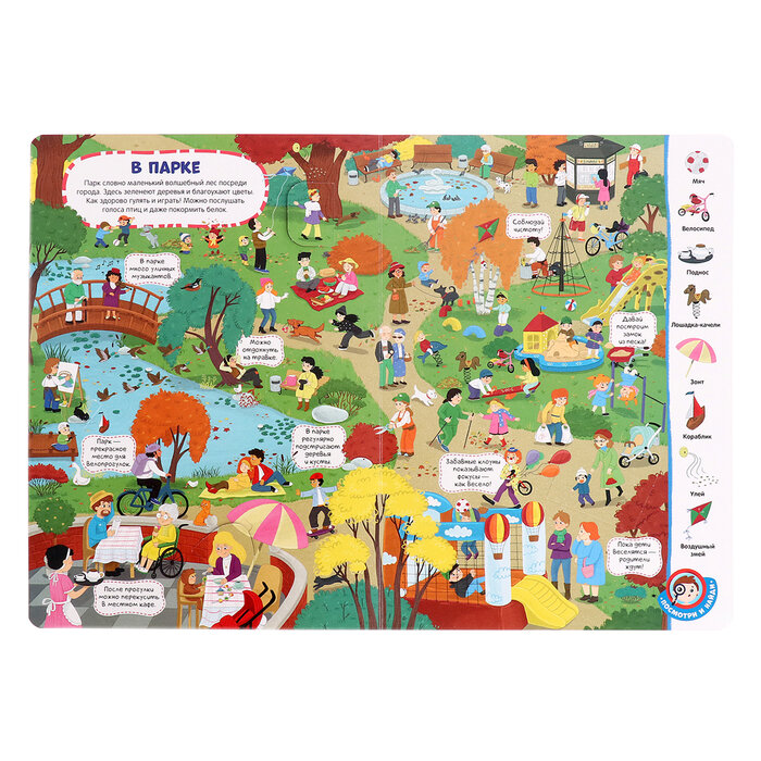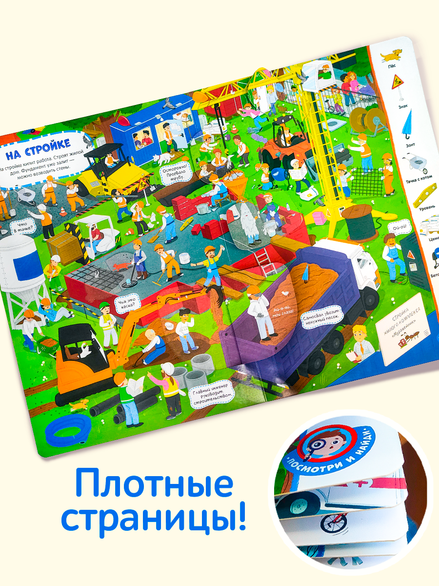Книга с окошками «Город» это большая красочная книга-картинка, на страницах которой малыш сможет отправиться в настоящее путешествие по людному мегаполису. Окошки с интересными фактами дополняют сюжет иллюстраций весёлыми и необычными деталями. На каждой странице вас будет сопровождать семейство гусей, которые тоже живут в этом городе и превращают обычную прогулку по парку в весёлое приключение. Виммельбух эффективный способ развития памяти, внимания и речи ребенка; коммуникация родителей с детьми, которая дает прекрасную возможность фантазировать и рассуждать вместе; проверенный способ разговорить малыша. Окошки имеют удобную выемку для детских пальчиков, чтобы ребёнку было удобно открывать их. Книга выполнена из плотного картона с ламинированной обложкой. Виммельбух дополнен увлекательными заданиями «Найди и покажи». Разглядывайте иллюстрации и ищите спрятанные предметы вместе с малышом: на каждом развороте новое задание. Листайте книгу вместе с малышом, открывайте окошки и отправляйтесь на прогулку в чудесном настроении! Книга для детей поможет развить словарный запас, воображение, любознательность малыша, увлечет его на долгое время и сделает раннее развитие интересным. Скругленные углы обеспечат безопасное взаимодействие с книгой.
