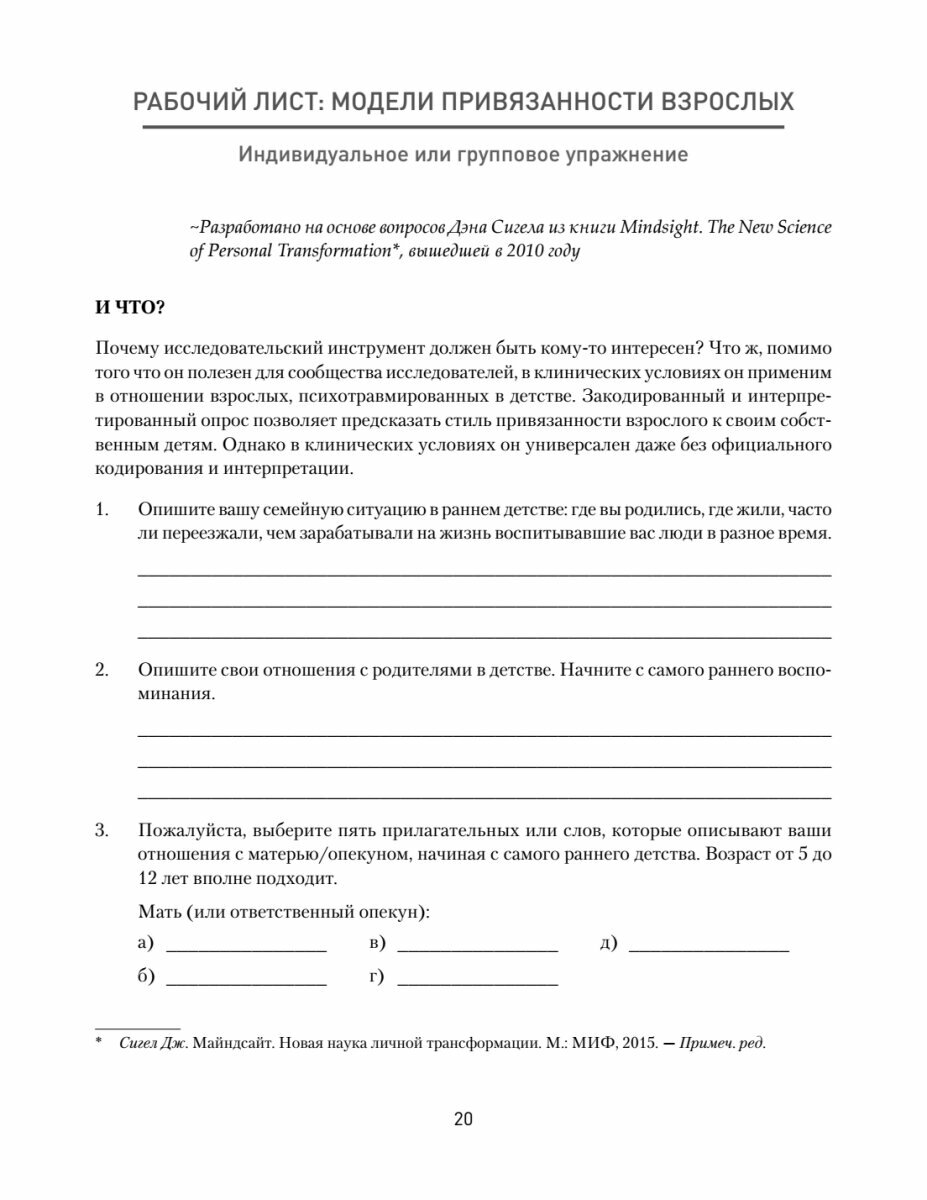 Эта рабочая тетрадь необходима всем специалистам в области психического здоровья, особенно начинающим. Пособие содержит более 100 подходов к эффективному лечению психотравмы и объединяет широкий спектр методов терапии в один ресурс. Одинаково полезные как в групповом, так и в индивидуальном сеттинге, эти инструменты и техники расширят опыт любого специалиста. Они взяты из самых эффективных методов лечения психотравмы: арт-терапии, КПТ, ДПТ, ЭСТ, EMDR, энергетической психологии, гештальт-терапии, терапии осознанности, психодрамы, сенсомоторной психологии и телесной терапии.