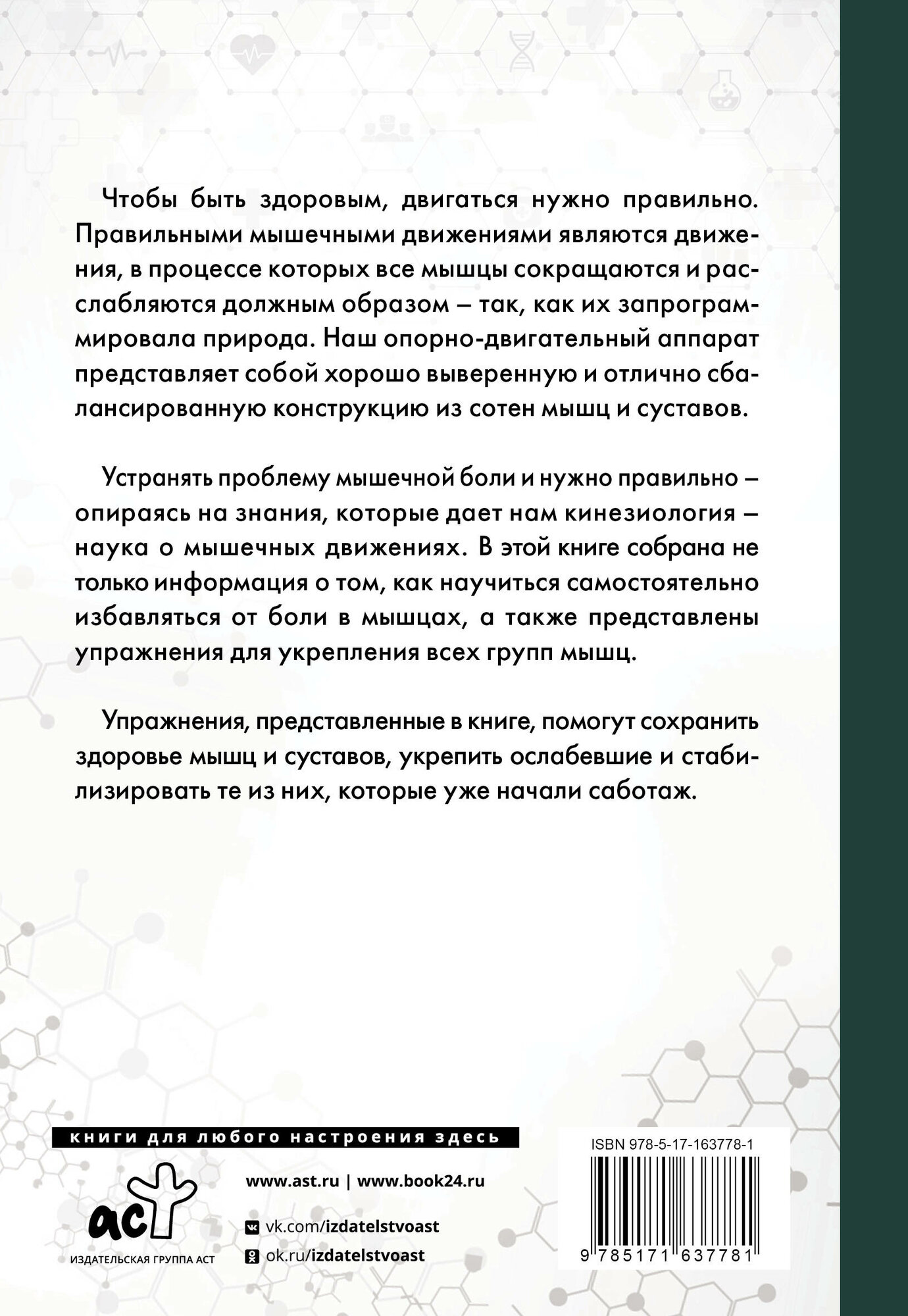 Чтобы быть здоровым, двигаться нужно правильно. Правильными мышечными движениями являются движения, в процессе которых все мышцы сокращаются и расслабляются должным образом — так, как их запрограммировала природа. Наш опорно-двигательный аппарат представляет собой хорошо выверенную и отлично сбалансированную конструкцию из сотен мышц и суставов. Устранять проблему мышечной боли и нужно правильно — опираясь на знания, которые дает нам кинезиология — наука о мышечных движениях. В этой книге собрана не только информация о том, как научиться самостоятельно избавляться от боли в мышцах, а также представлены упражнения для укрепления всех групп мышц. Упражнения, представленные в книге, помогут сохранить здоровье мышц и суставов, укрепить ослабевшие и стабилизировать те из них, которые уже начали саботаж.