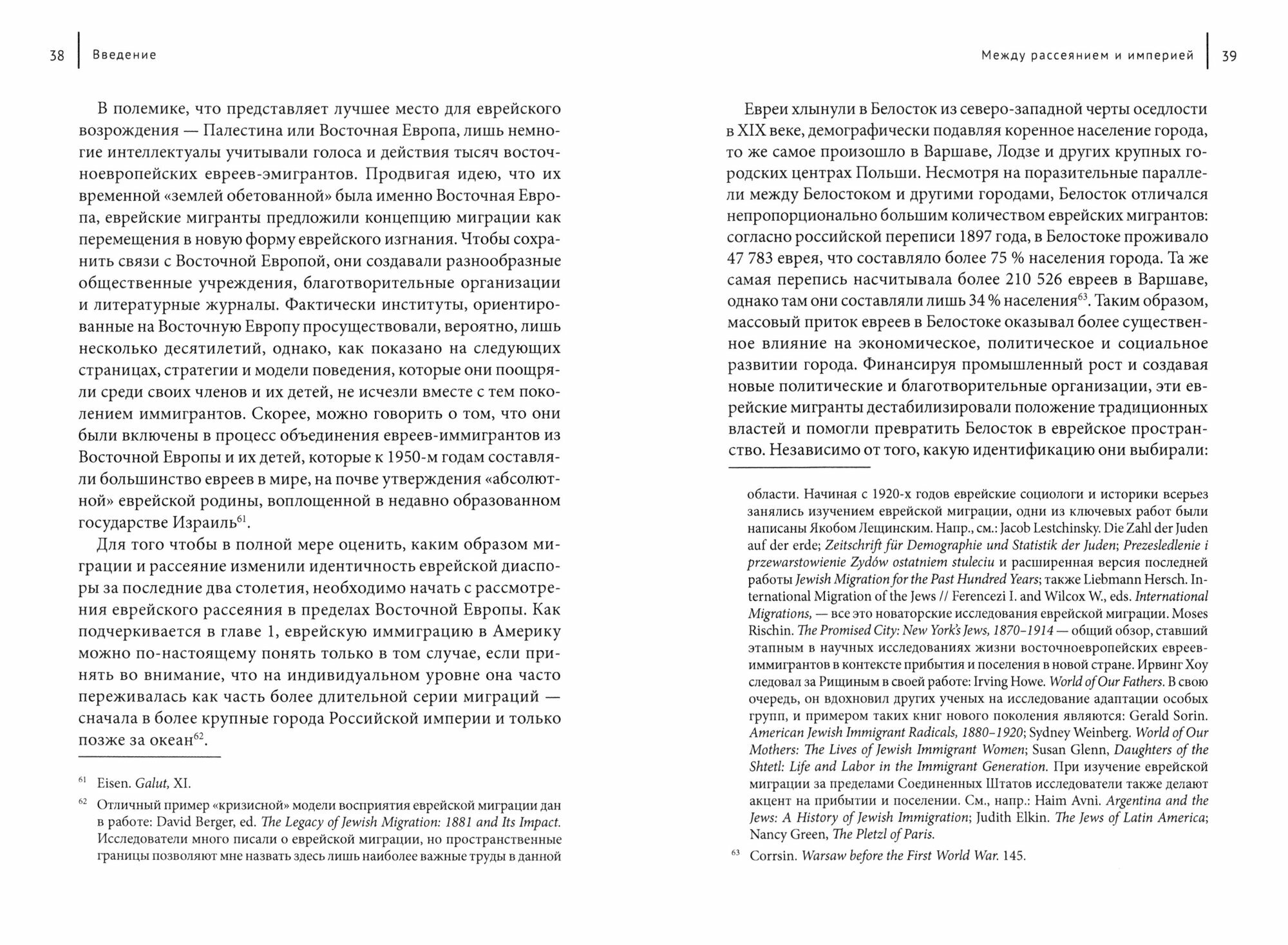 Массовая миграция восточноевропейских евреев и их рас- селение в городах Европы, Соединенных Штатов, Аргентины, Ближнего Востока и Австралии в конце XIX и начале XX века не только трансформировали демографические и культурные центры мирового еврейства, но также изменили понимание и евреями своей диаспоральной идентичности.
