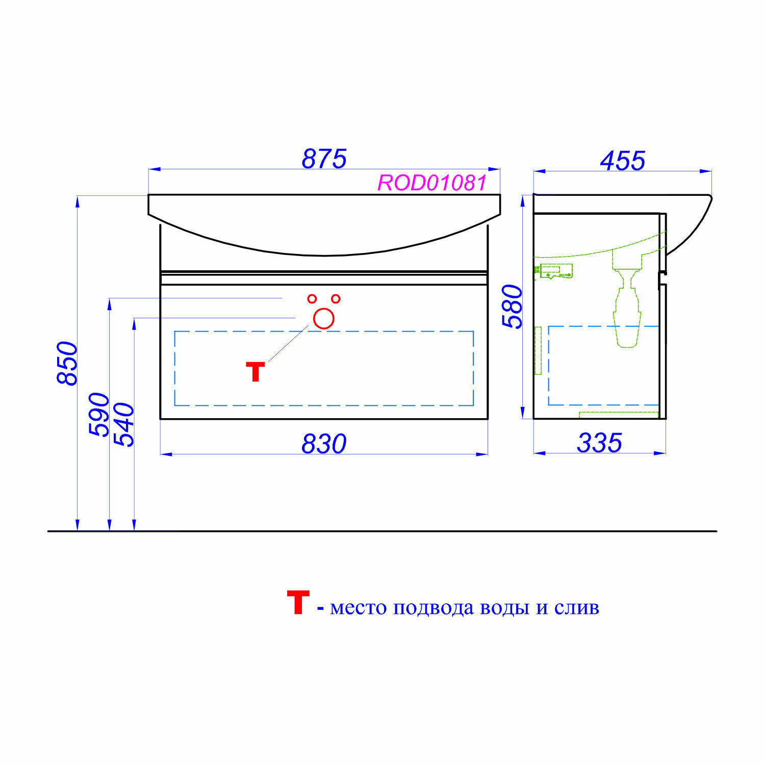 - Габариты корпуса тумбы (ШхВхГ): 1016х830х335 мм.