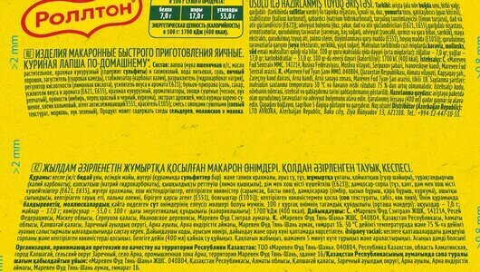 | Тип товара | Лапша быстрого приготовления |
