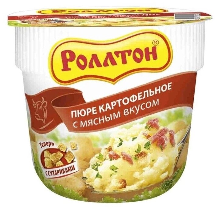 Картофельное пюре от Роллтон создано в соответствии с лучшими традициями и вкусовыми предпочтениями потребителей из самых высококачественных ингредиентов. Аппетитное пюре в стаканчике можно приготовить всего за 5 минут. Невероятно быстро при этом сытно и полезно! Кто не любит сочный вкус мяса? А в сочетании с нежнейшим картофелем пюре с добавлением молока, зелени и сухариков получается настоящее произведение кулинарного искусства.