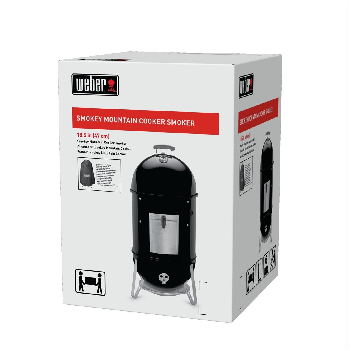 Угольная гриль-коптильня Weber Smokey Mountain Cooker с диаметром чаши 47 см - уникальная коптильня от Weber. Коптильня имеет две массивных решетки для приготовления из хромированной стали, установленный в крышке термометр и большую емкость для воды, обеспечивающую идеальное копчение. Размеры в собранном виде - 50 x 50 x 106 см. Вес - 17.7 кг. Крышка, котел и емкость для воды, изготовлены из жаропрочной стали, покрытой фарфоровой эмалью изнутри и снаружи. Гриль можно оставлять на улице в любую погоду.