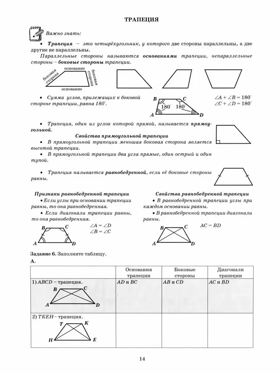 Тетрадь-тренажёр - это уникальное пособие, помогающее формировать необходимые навыки для выполнения различных видов заданий по геометрии, своевременно выявлять и устранять пробелы в знаниях. Все задания удобно систематизированы в виде таблиц, а выполнять их решение можно непосредственно в тетради-тренажёре. Материалы ориентированы на учебник "Математика. Геометрия: 7-9 классы: базовый уровень" (Атанасян Л.С., Бутузов В.Ф., Кадомцев С.Б. и др.), включённый в Федеральный перечень учебников. Также возможно применение этих материалов с другими учебниками по геометрии 8-го класса.
