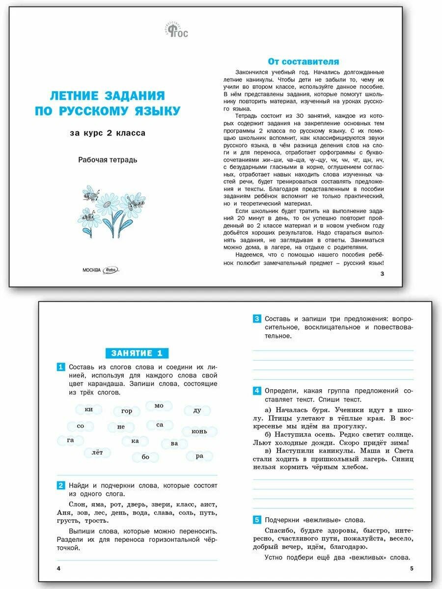 Пособие содержит необходимые для закрепления знаний по русскому языку у учащихся 2 класса задания, которые школьники могут выполнить самостоятельно во время летних каникул. Все задания соответствуют ФОП НОО по учебному предмету «Русский язык» и требованиям действующего ФГОС начального общего образования.