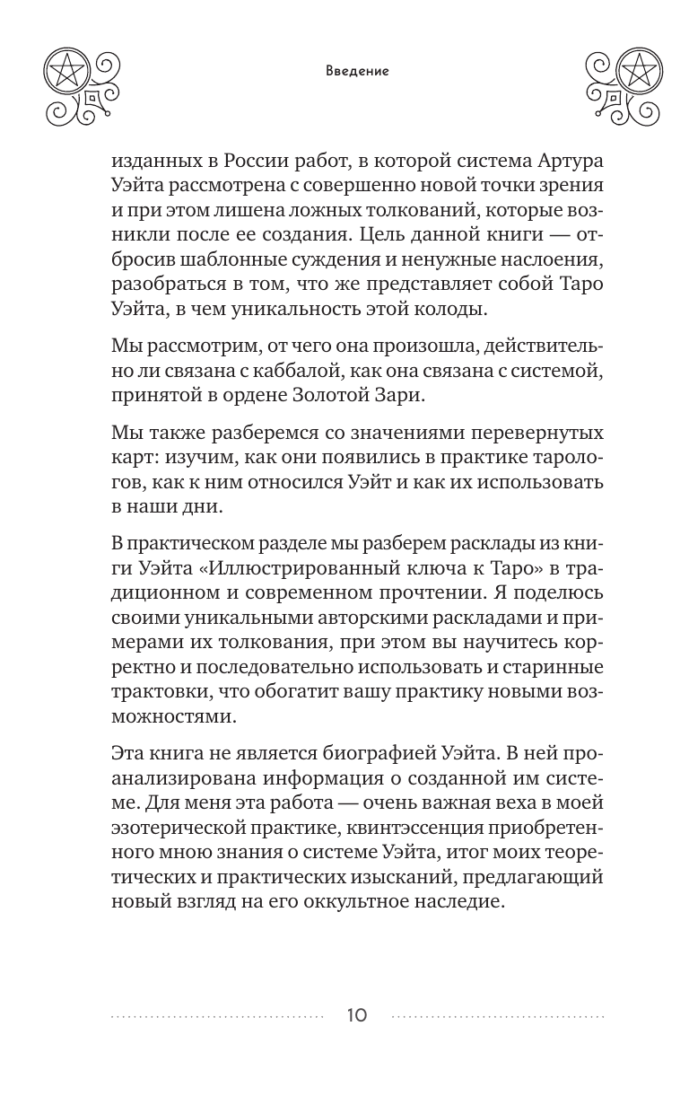 Эта книга — современный и практичный взгляд на самую популярную колоду Таро в мире, созданную британским мистиком Артуром Эдвардом Уэйтом более 100 лет назад. Ее автор, Эдуард Леванов — автор полюбившихся читателям книг "Таро для начинающих. Практический курс" и "100 раскладов Таро на все случаи жизни". В книге "Таро Уэйта. История, толкование, расклады" вас ждет: • История создания самой знаменитой колоды Таро. • Структура Таро Артура Уэйта и его эзотерические корни. • Толкование всех 78 карт колоды в трактовке Уэйта и современной интерпретации. • Тематические значения карт для вопросов о любви и отношениях, деньгах и здоровье в прямом и перевернутом положении. • 10 старинных раскладов в современной интерпретации с наглядными схемами и подробным разбором примеров. Эта книга поможет как начинающему тарологу, только открывающему для себя тайны культовой колоды, так и всем тем, кто стремится упорядочить свои знания и вернуться к истокам и изначальному духу Таро. Эдуард Леванов — практикующий таролог, преподаватель, коллекционер и исследователь Таро. Его система чтения Таро основана на древних и традиционных значениях карт, адаптированных под современную реальность. Более 10 лет практики и консультаций оформились в системный курс обучения Таро для начинающих, который и лег в основу этой книги. В личной коллекции Эдуарда более 50 традиционных и старинных колод Таро, которые он использует в работе.