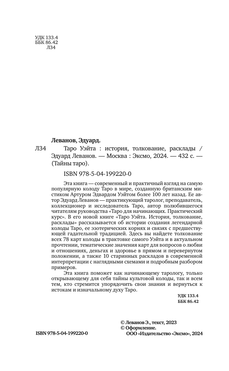Таро Уэйта. История толкование расклады (обложка) (Леванов Эдуард Владимирович); Эксмо, 2024