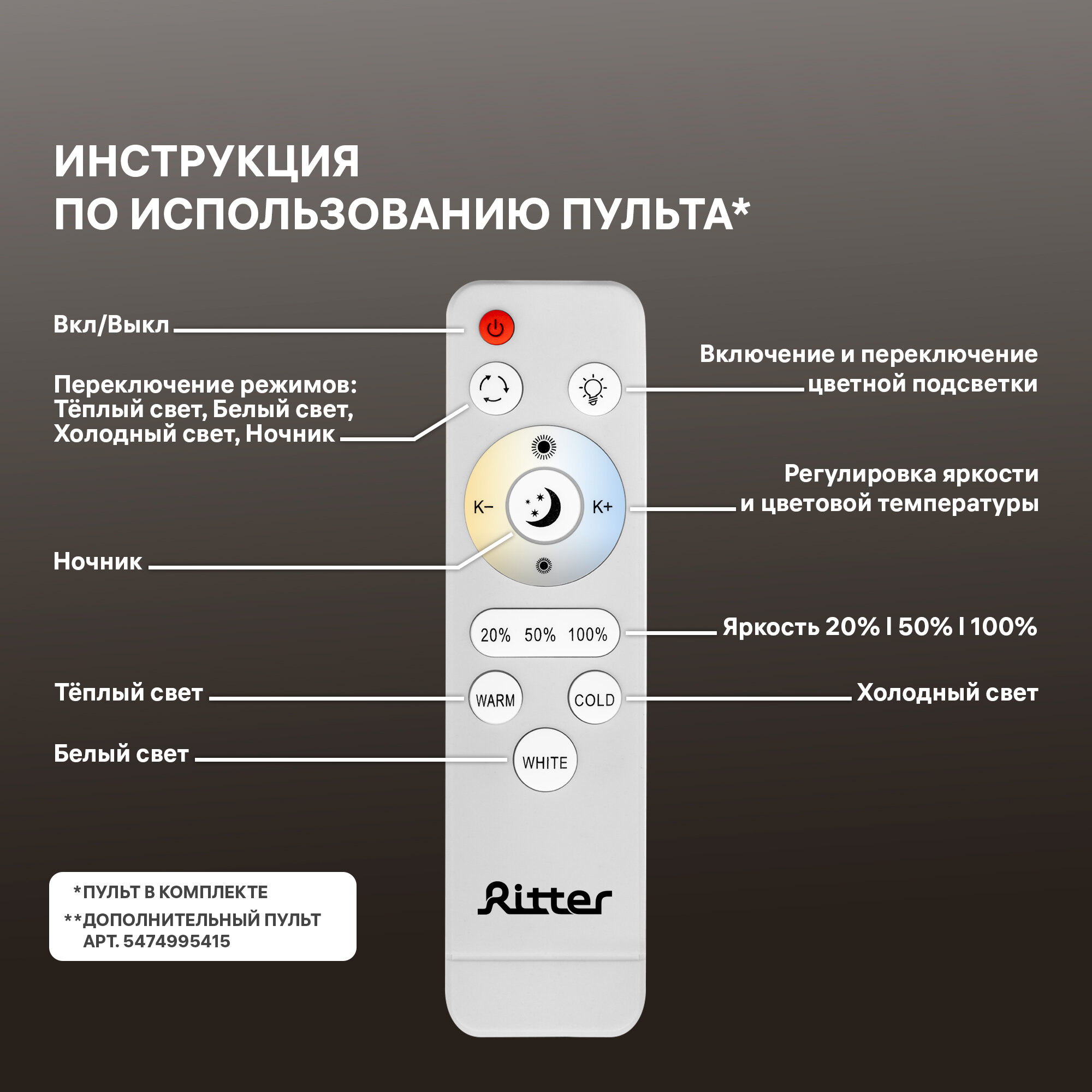 Состав комплекта | Люстра, монтажный комплект, инструкция, пульт |