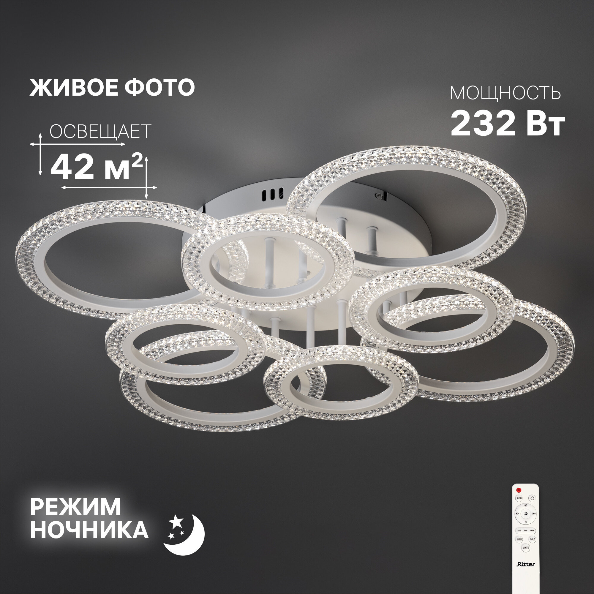 На сегодняшний день товар «Люстра светодиодная «Galassia» 515801 с пультом управления 35 м² регулируемый белый свет цвет белый RITTER» можно купить с кешбеком в 1 магазине: Яндекс.Маркет