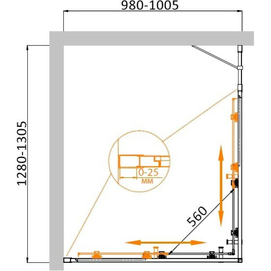 - Регулировка ширины предусмотрена за счет боковых профилей.