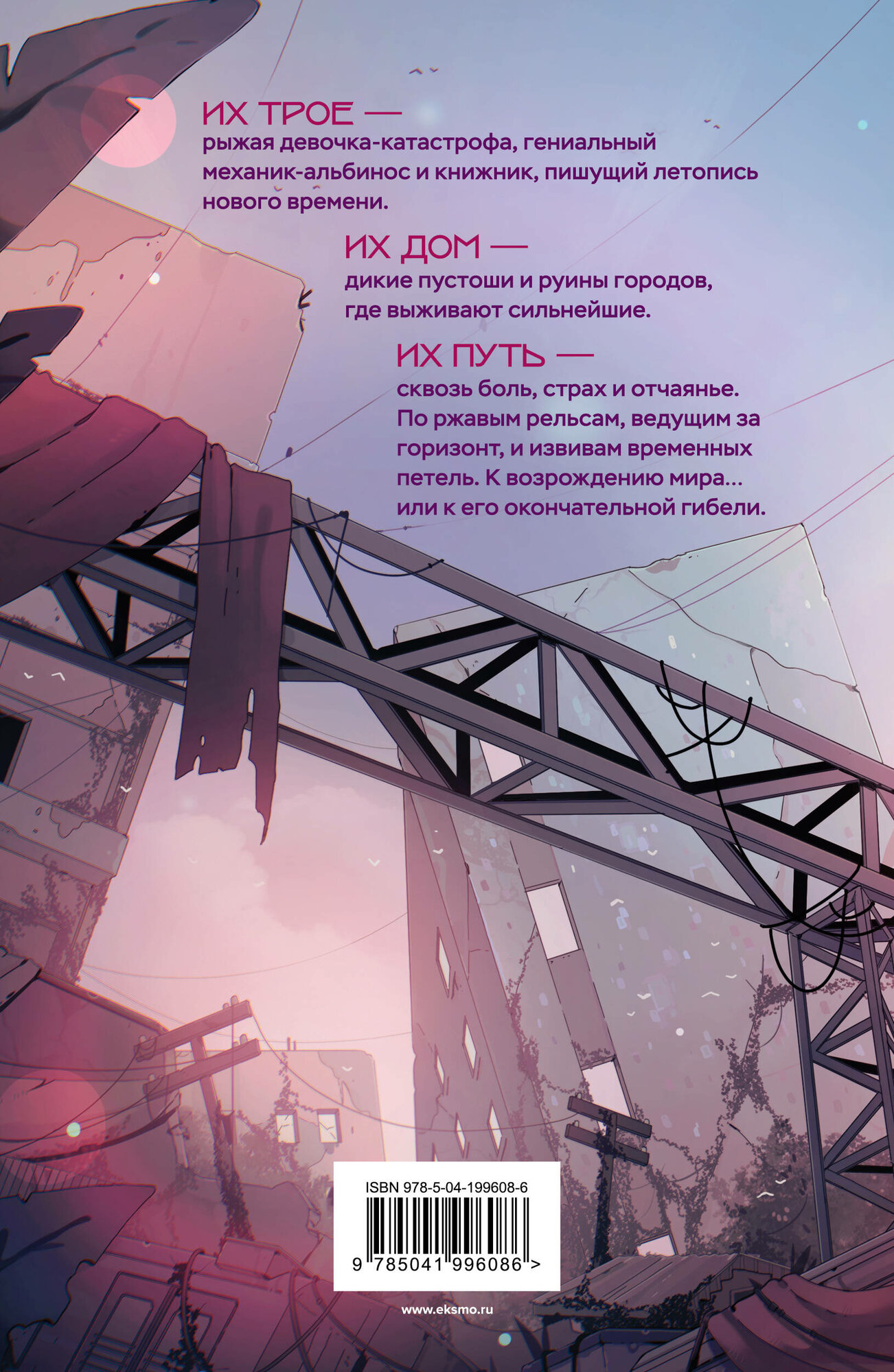 Их трое — рыжая девочка-катастрофа, гениальный механик-альбинос и книжник, пишущий летопись нового времени. Их дом — дикие пустоши и руины городов, где выживают сильнейшие. Их путь — сквозь боль, страх и отчаянье. По ржавым рельсам, ведущим за горизонт, и извивам временных петель. К возрождению мира… или к его окончательной гибели.