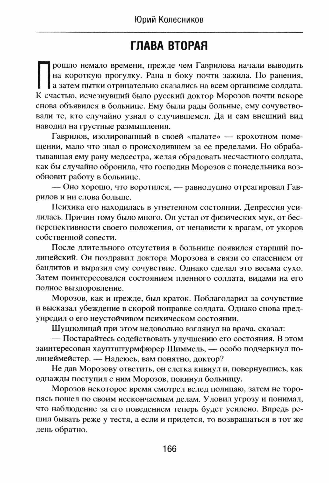 Роман-хроника легендарного советского разведчика, полковника государственной безопасности, Героя Российской Федерации Юрия Антоновича Колесникова (1922-2013) переносит читателя из кабинета Сталина, беседующего со знатным иностранцем, где каждый говорит совсем не то, что думает, в глубокий вражеский тыл. Здесь авантюризм генерала, ведающего разведкой в одной из советских десантных бригад, не останавливается перед дезинформацией высшего военного руководства страны, что несомненно могло привести к необратимым гибельным последствиям… Эти и многие другие истории, что десятилетиями держались в секрете, представлены на фоне безмерного героизма, чудовищных страданий и жертв нашего народа и его армии.