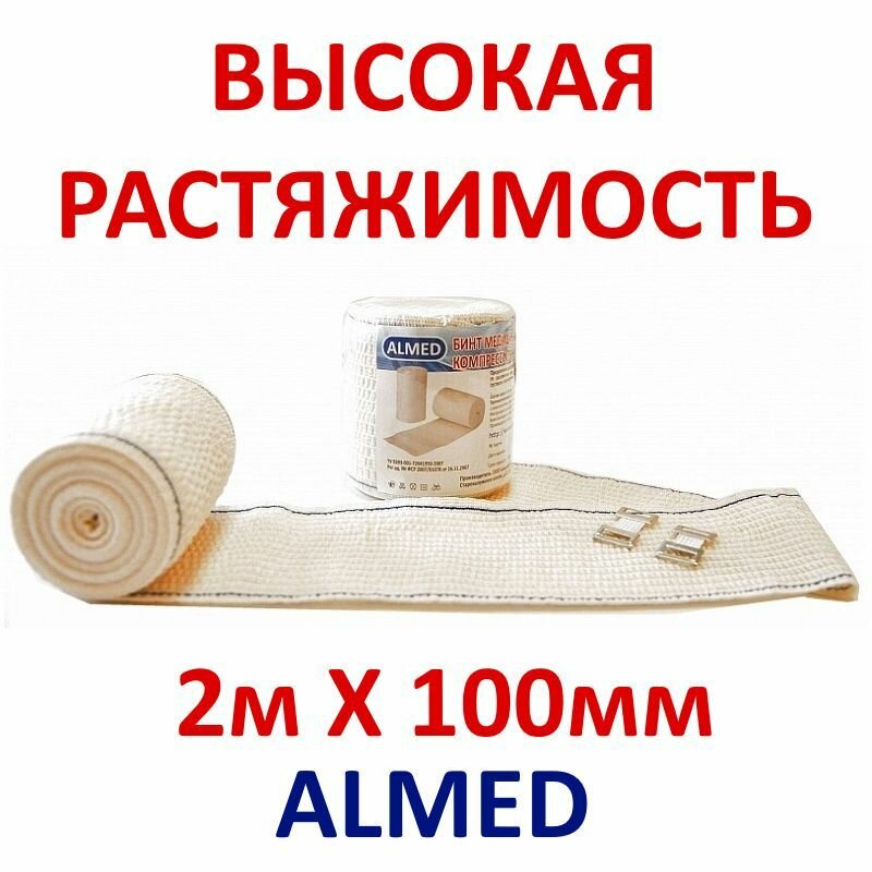 Бинт мед. эластич. ленточный высокой растяжимости 2мх100мм АЛЬМЕД