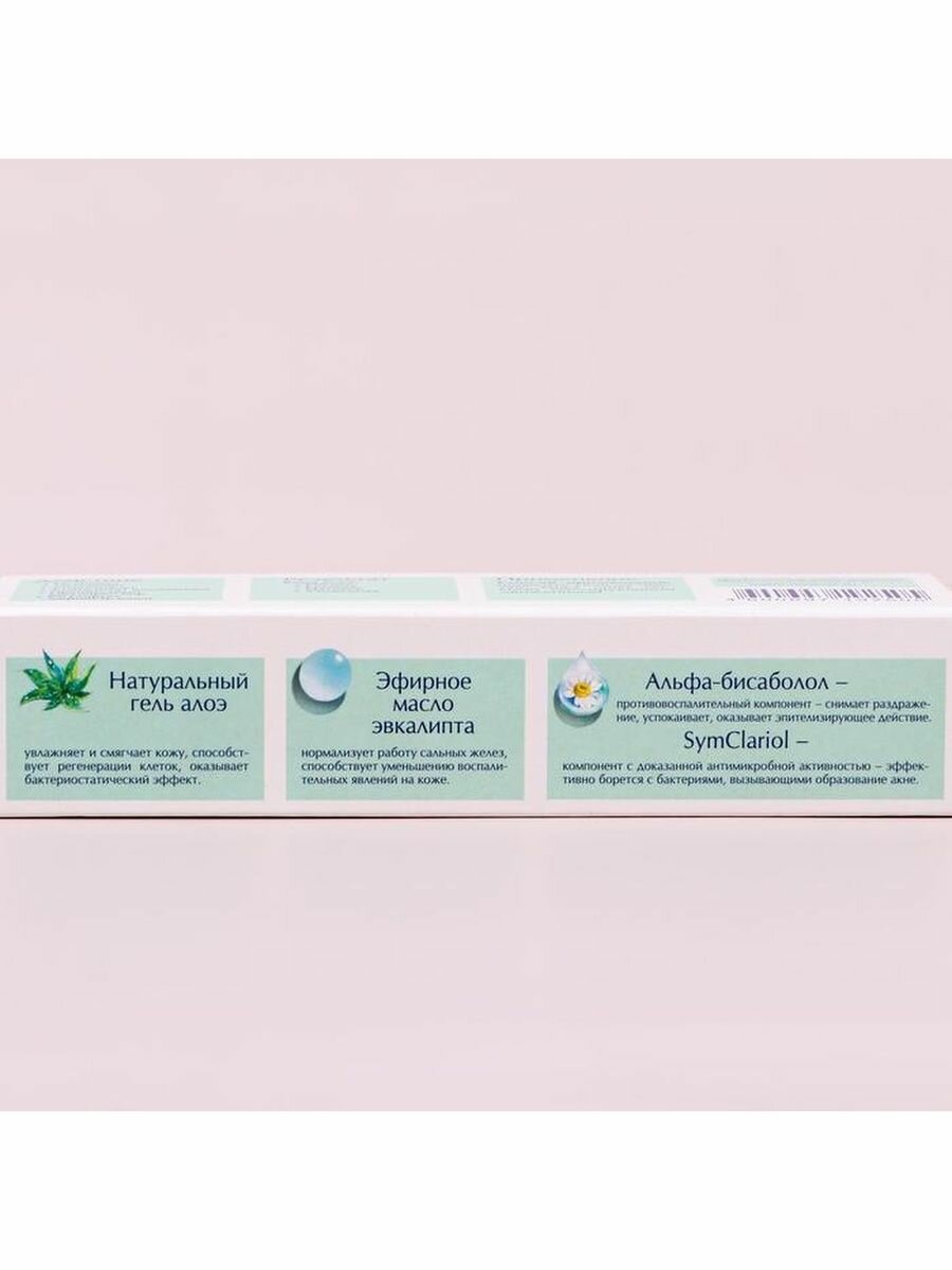 Гель предназначен для ухода за жирной, комбинированной и проблемной кожей. Он содержит натуральный гель алоэ, эфирное масло эвкалипта и альфа-бисаболол. Активные компоненты уменьшают образование кожного сала, увлажняют, смягчают и успокаивают кожу. Противовоспалительный комплекс с доказанной эффективностью SymClariol, входящий в состав геля, борется с воспалениями и акне, оказывает себорегулирующее действие и препятствует закупорке пор. В результате применения геля кожа становится мягкой, гладкой и свежей, приобретает здоровый ухоженный вид.