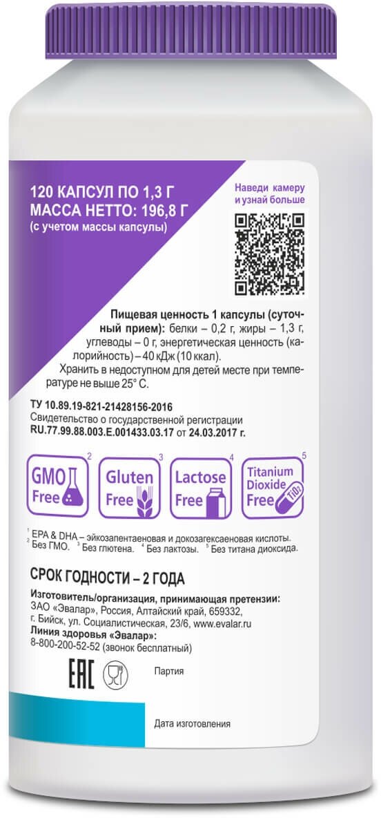 | Состав | Рыбий жир из сардин, хамсы и скумбрии (1300 мг в 1 капсуле), Страна производства:Россия |