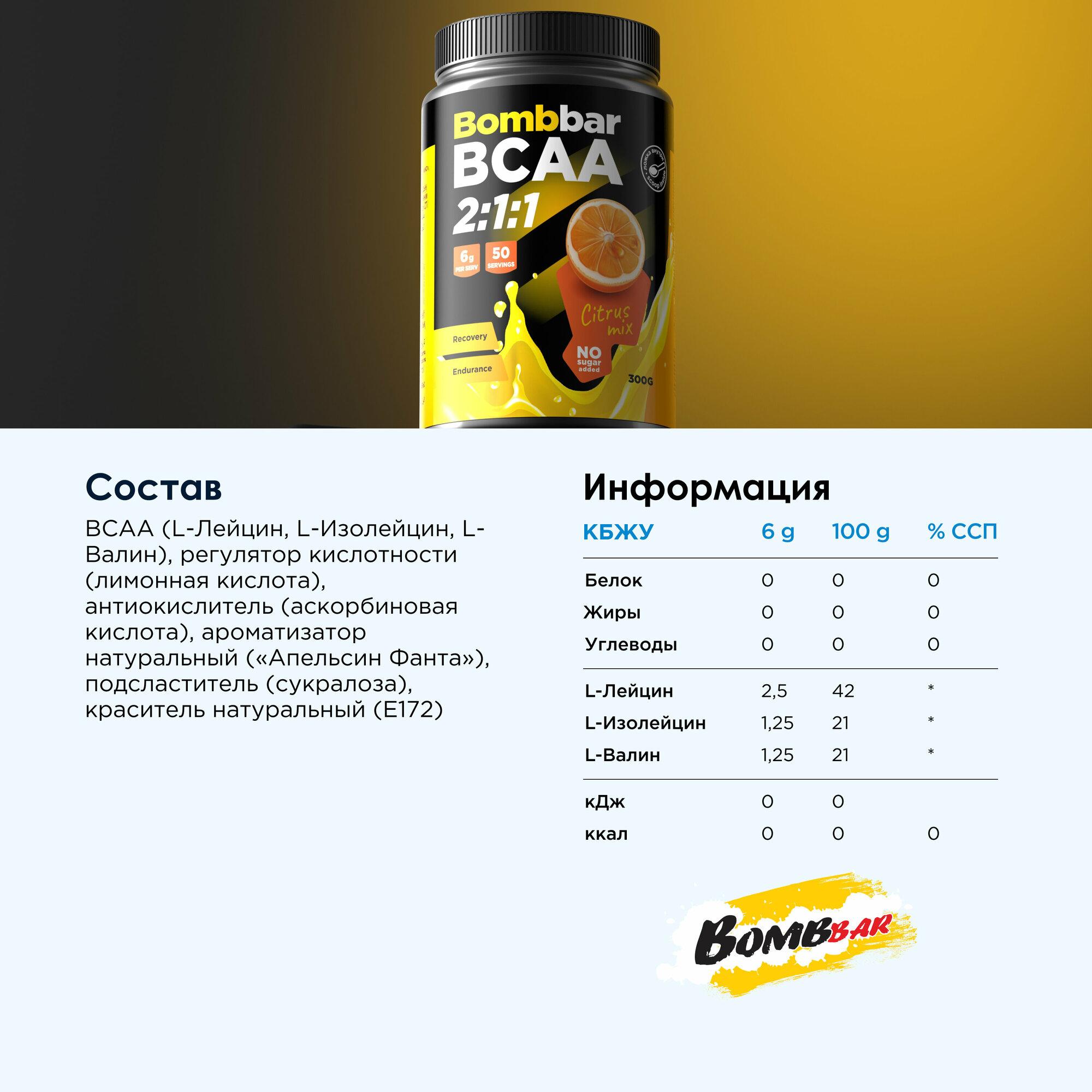 Бомббар Коктейль BCAA 300 г Малина Фитнес фуд ООО