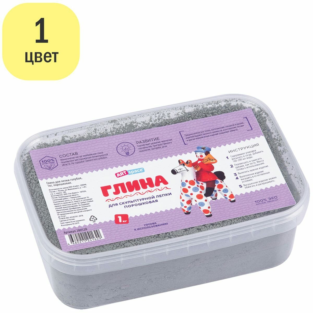 Экологически чистая кембрийская глина идеально подойдет для художественной и скульптурной лепки. Способствует развитию мелкой моторики, творческих способностей и пространственного мышления. Перед применением смешивается с водой.