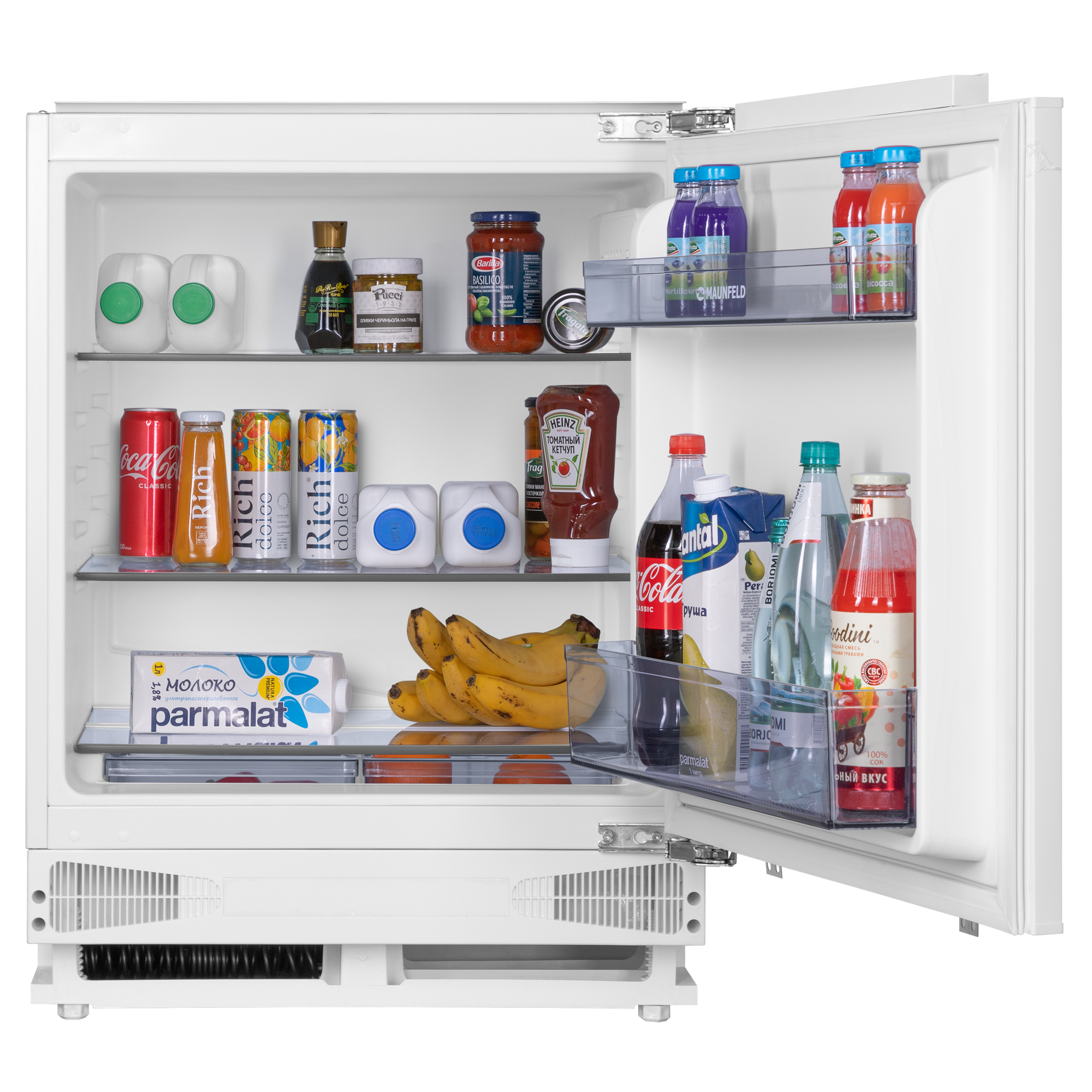 Компактный встраиваемый холодильник высотой 88 см. Общий объем холодильной камеры, имеющей динамическое охлаждение — 137 л.
