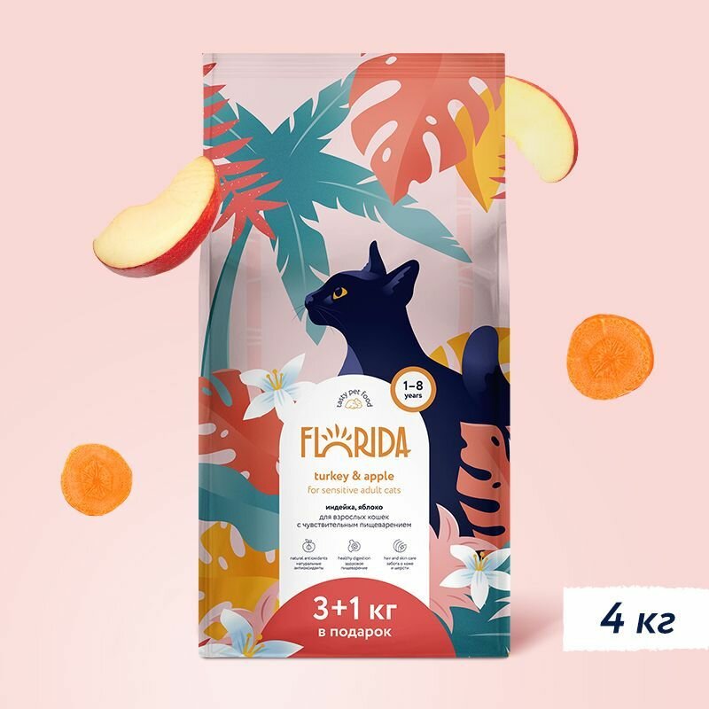 Florida Preventive Line – это линейка профилактических кормов для питомцев с разными физиологическими потребностями в питании. Рационы Florida Preventive Line содержат питательные компоненты, которые необходимы для поддержания здоровья и профилактики развития различных заболеваний у взрослых кошек и собак.Линейка Florida Preventive Line объединяет в себе природную пользу и современные технологии. Для производства используются высококачественное мясо и натуральные растительные ингредиенты, которые выращиваются и собираются вручную в экологически чистых районах России. Перед применением корма рекомендуем проконсультироваться с ветеринарным врачом.Полнорационный сбалансированный сухой корм для кошек Florida Preventive Line Renal предназанчен для поддержания здоровой работы почек у взрослых кошек, а также для профилактики почечной недостаточности и ее осложнений. Сбалансированный минеральный состав (снижено количество фосфора) - предотвращает появление гиперфосфатемии Легкоусвояемые белки - способствуют снижению нагрузки на почки и помогают профилактирвоать потерю мышечной массы Омега-3 жирные кислоты - препятствуют возникновению воспаления, способствуют улучшению гломерулярной фильтрации. Фитокомпозиция (листья крапивы, лимонник и хвощ) - обладает противовоспалительным, регенеративным и тонизирующим действием. Высокая вкусовая привлекательность помогает стимулировать аппетит кошки. Не содержит искусственных красителей, ароматизаторов или консервантов, ГМО. Состав: дегидрированное куриное мясо 23%, рис, маис, ячмень, куриный жир (7%), ферментированный протеин, натуральная вкусо-ароматическая добавка, витаминно-минеральный комплекс, дегидратированные цельные яйца, жом свёклы, рыбий жир, DL-метионин (7000 мг/кг), фруктоолигосахариды, таурин (3000 мг/кг), сухие листья крапивы, лимонник сухой, хвощ сухой, экстракт Юкки Шидигера (500 мг/кг), антиоксидант. Пищевая ценность на 100 г: Протеин 26 % Жир 14 % Клетчатка 4 % Зола 4,5 % Влажность 7 % Кальций 0,6 % Фосфор 0,55 % Магний 0,06 % Натрий 0,6 % Калий 0,6 % Медь 18 мг/кг Цинк 160 мг/кг Железо 120 Йод 2,5 мг/кг Углеводы 43 % Витамин А 22000 МЕ/кг Витамин Д 1500 МЕ/кг Витамин Е 350 мг/кг Омега-3 0,38 % Омега-6 2,3 % Энергетическая ценность на 100 г: 366 ккал.