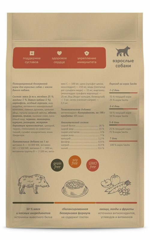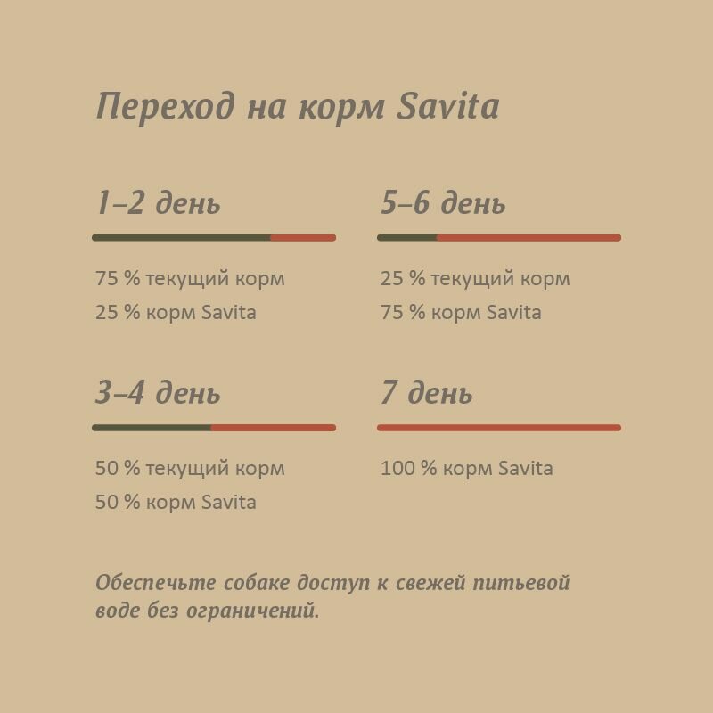Полнорационные и сбалансированные корма Savita класса холистик содержат высокий процент мясных ингредиентов, необходимых витаминов и минералов, без добавления зерновых культур в составе. Надолго обеспечивают щенка необходимой энергией для правильного роста и развития. Каждый ингредиент тщательно подобран в соответствии с природными потребностями питомца и является важным компонентом в рецептуре корма, минимизируя риск возникновения аллергических реакций.