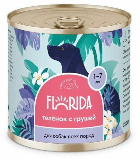 Консервы для собак Florida - уверенность в качестве рациона для Вашего питомца!Florida - натуральные и сбалансированные по своему составу консервы. Все ингредиенты проходят тщательный отбор, чтобы радовать Вашего любимца каждый день!- без искусственных красителей- без ГМО, красителей и консервантов- высокая усвояемость питательных веществ- высококачественный белокСуточная норма 40-60 г на 1 кг веса животного